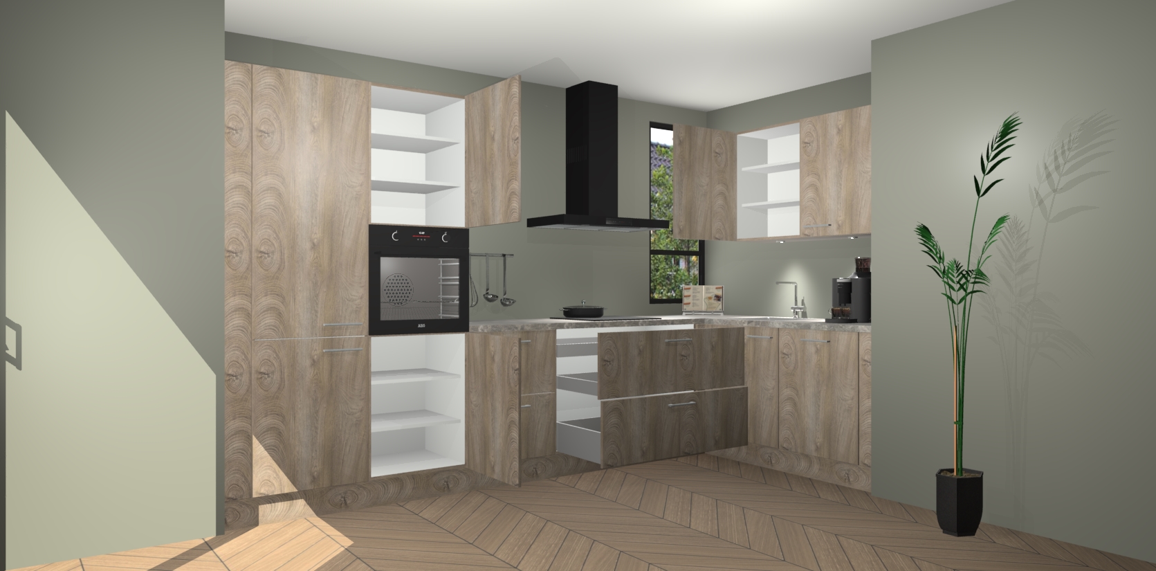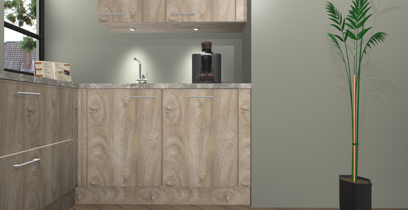 Welkom in uw nieuwe moderne keuken! Laat ons u voorstellen aan de Cantaro Eiken keuken Vlaanderen . Deze prachtige hoekkeuken straalt exclusiviteit en luxe uit als geen ander. Het strakke design, de tijdloze kleuren en het model maken van deze keuken een moderne klassieker. En met voldoende opbergruimte heeft deze keuken echt voor ieder wat wils.