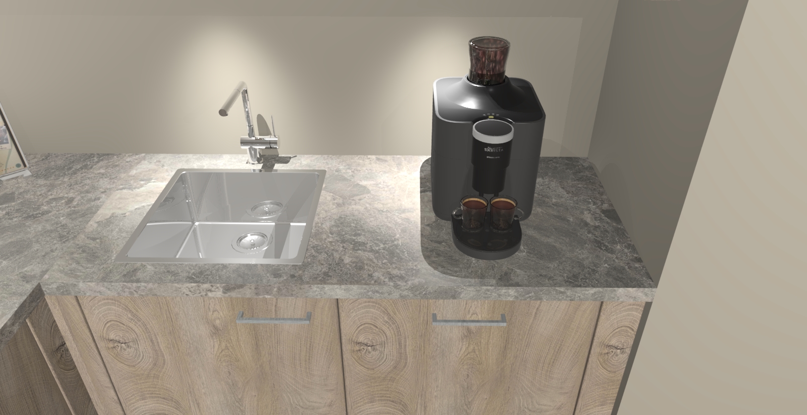 - De spoelbak is nog niet in gevreesd. Dit dient tijdens het werk gedaan te worden