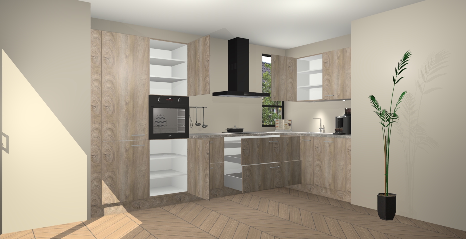 Welkom in uw nieuwe moderne keuken! Laat ons u voorstellen aan de Cantaro Eiken keuken Vlaanderen . Deze prachtige hoekkeuken straalt exclusiviteit en luxe uit als geen ander. Het strakke design, de tijdloze kleuren en het model maken van deze keuken een moderne klassieker. En met voldoende opbergruimte heeft deze keuken echt voor ieder wat wils.