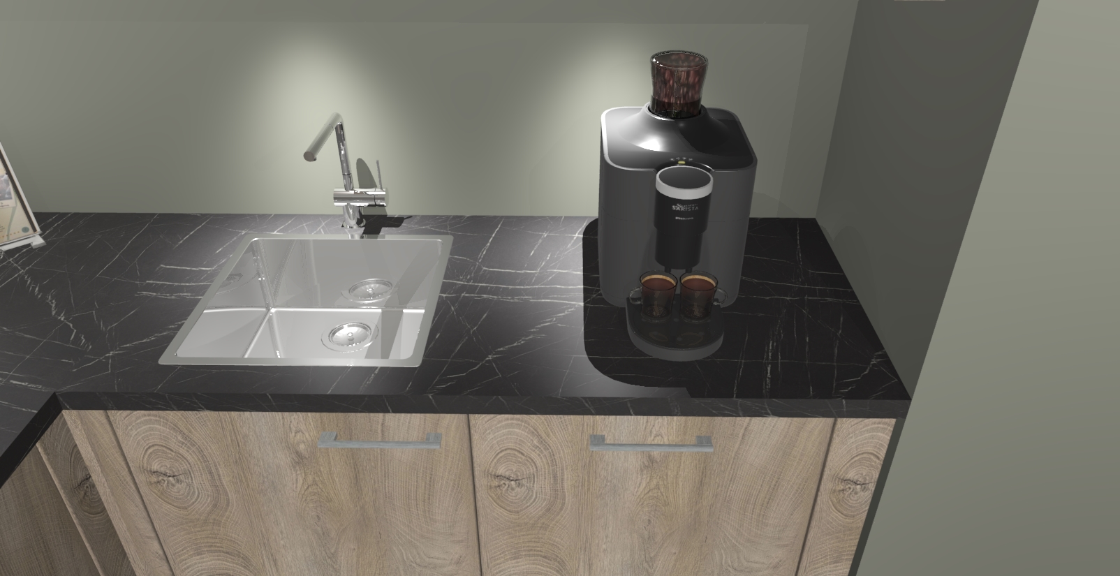 - De spoelbak is nog niet in gevreesd. Dit dient tijdens het werk gedaan te worden