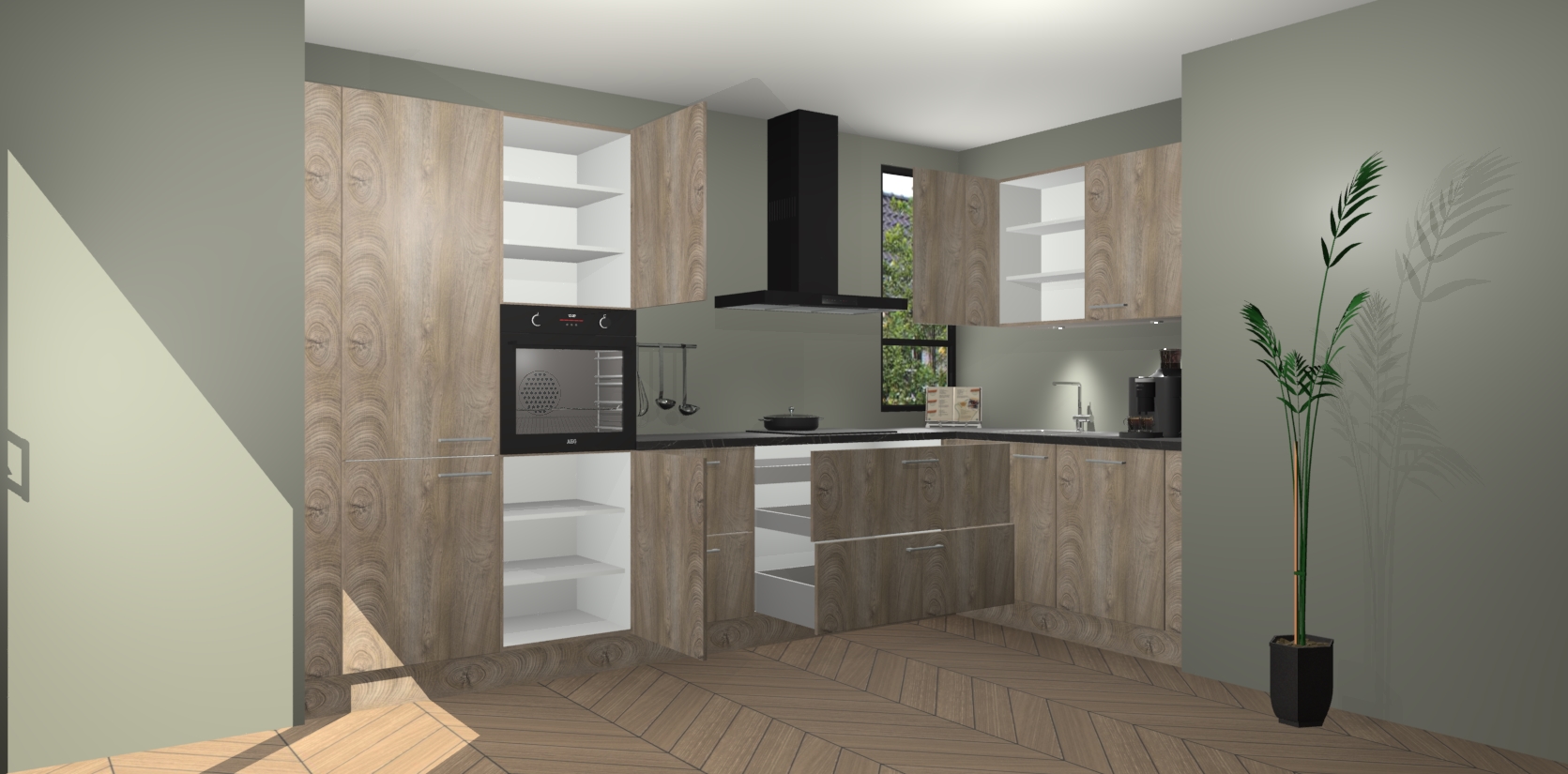 Welkom in uw nieuwe moderne keuken! Laat ons u voorstellen aan de Cantaro Eiken keuken Vlaanderen . Deze prachtige hoekkeuken straalt exclusiviteit en luxe uit als geen ander. Het strakke design, de tijdloze kleuren en het model maken van deze keuken een moderne klassieker. En met voldoende opbergruimte heeft deze keuken echt voor ieder wat wils.