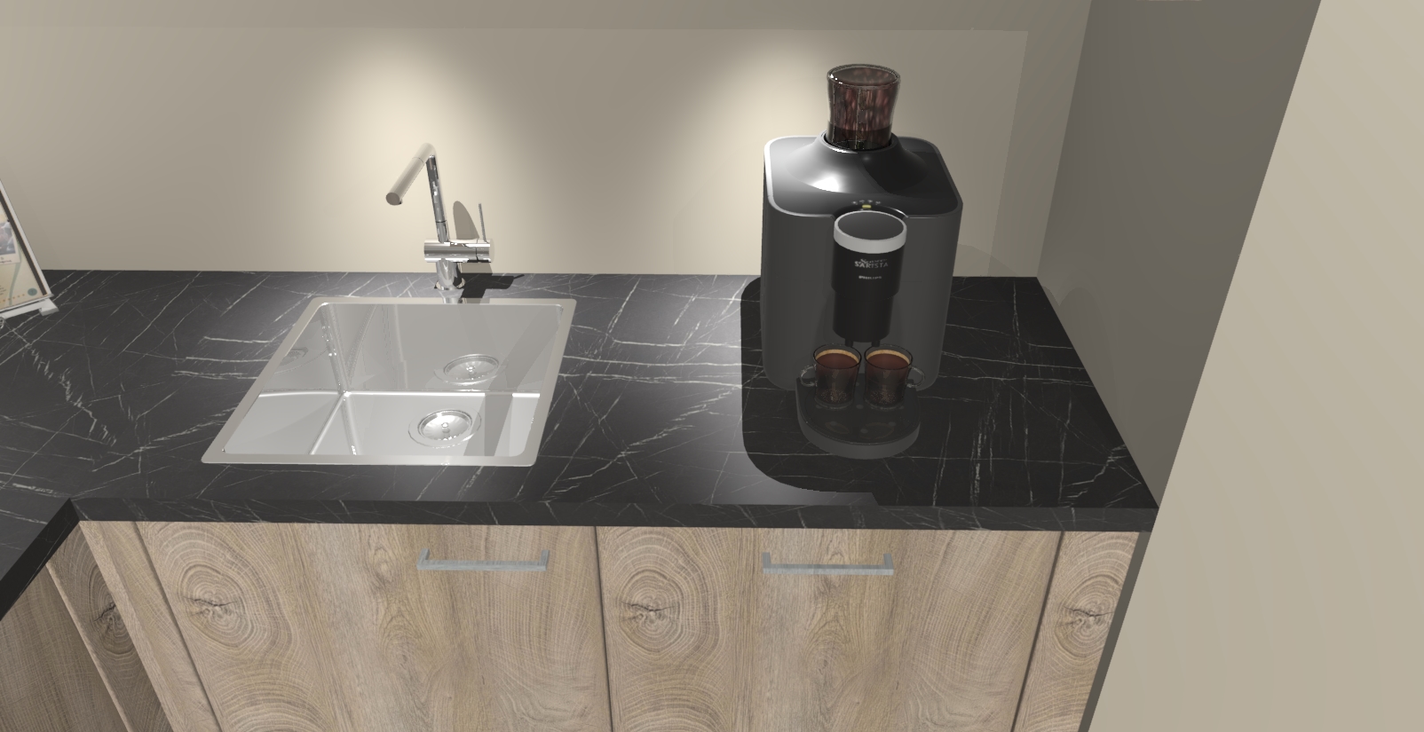 - De spoelbak is nog niet in gevreesd. Dit dient tijdens het werk gedaan te worden