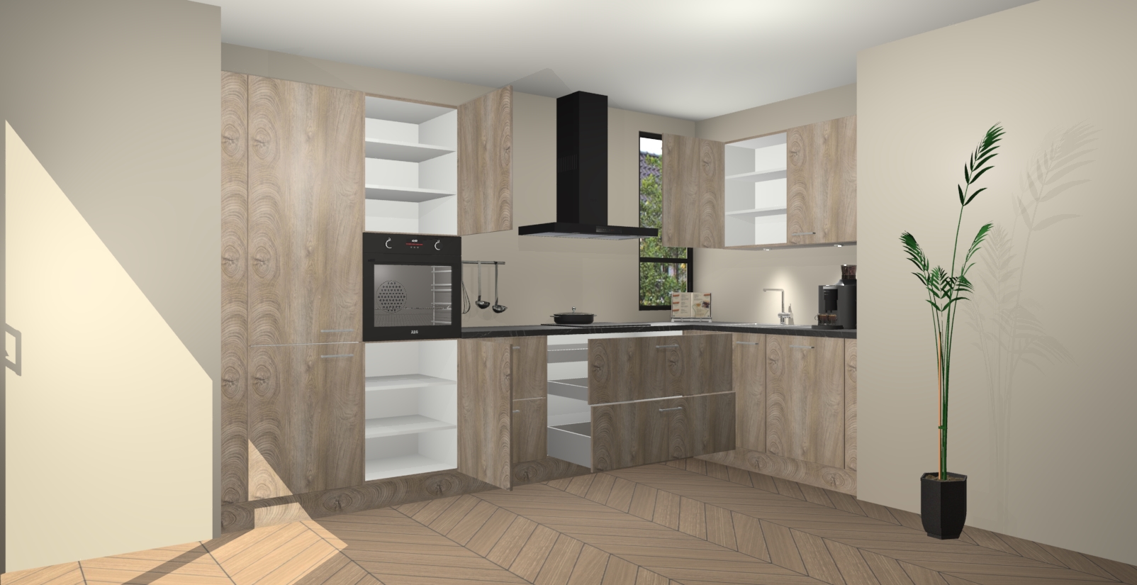 Welkom in uw nieuwe moderne keuken! Laat ons u voorstellen aan de Cantaro Eiken keuken Vlaanderen . Deze prachtige hoekkeuken straalt exclusiviteit en luxe uit als geen ander. Het strakke design, de tijdloze kleuren en het model maken van deze keuken een moderne klassieker. En met voldoende opbergruimte heeft deze keuken echt voor ieder wat wils.