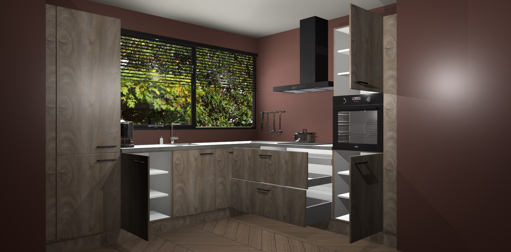 Met een modern, tijdloos design en ruime opslagruimte, zult u zich in no-time thuis voelen in uw nieuwe keuken. Uw leven wordt eenvoudiger met de soft-close deuren die voor het ultieme stille comfort zorgen - geen geluid dat u stoort terwijl u kookt. Ook is de keuken voorzien van 5 ingebouwde apparaten: een oven, inductie kookplaat, afzuigkap, vaatwasser en koelkast. Deze kunnen gemakkelijk na bestelling worden bijgewerkt naar AEG - waardoor uw luxe ervaring compleet is.