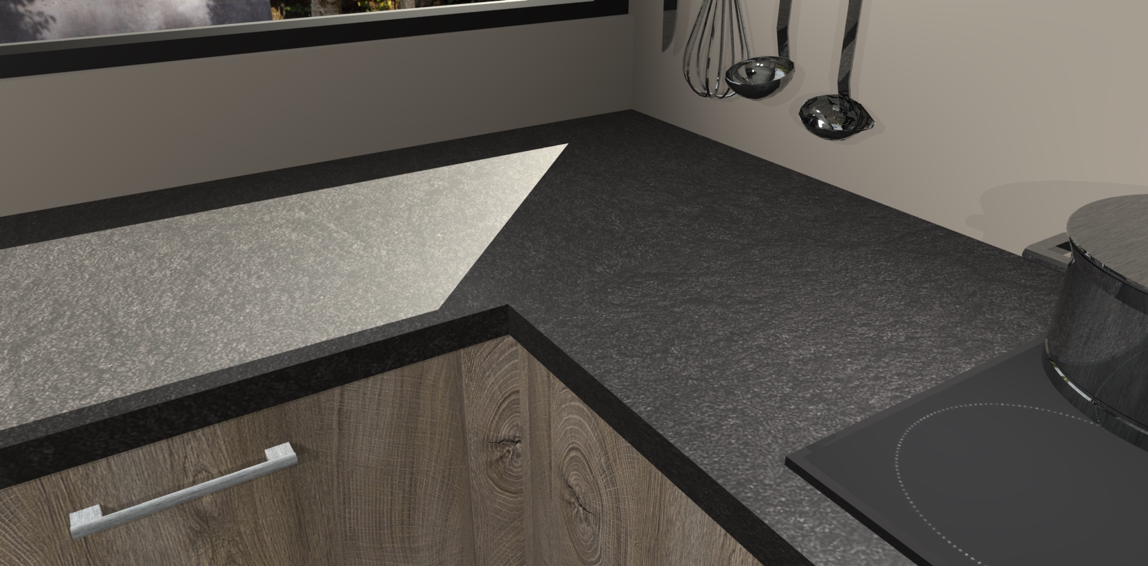 • Bij een hoekwerkblad zijn de hoeken in gevreesd en op maat gemaakt