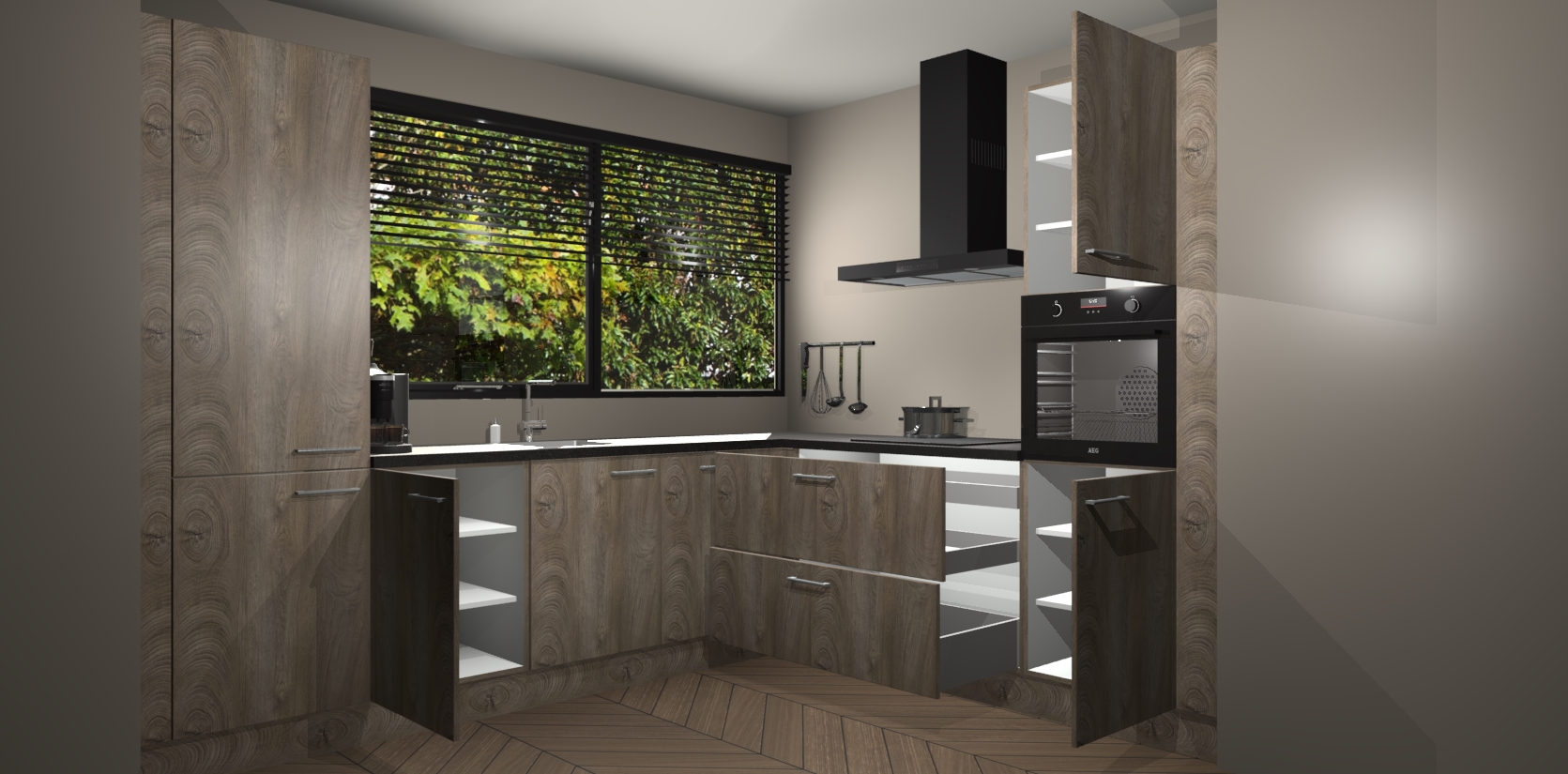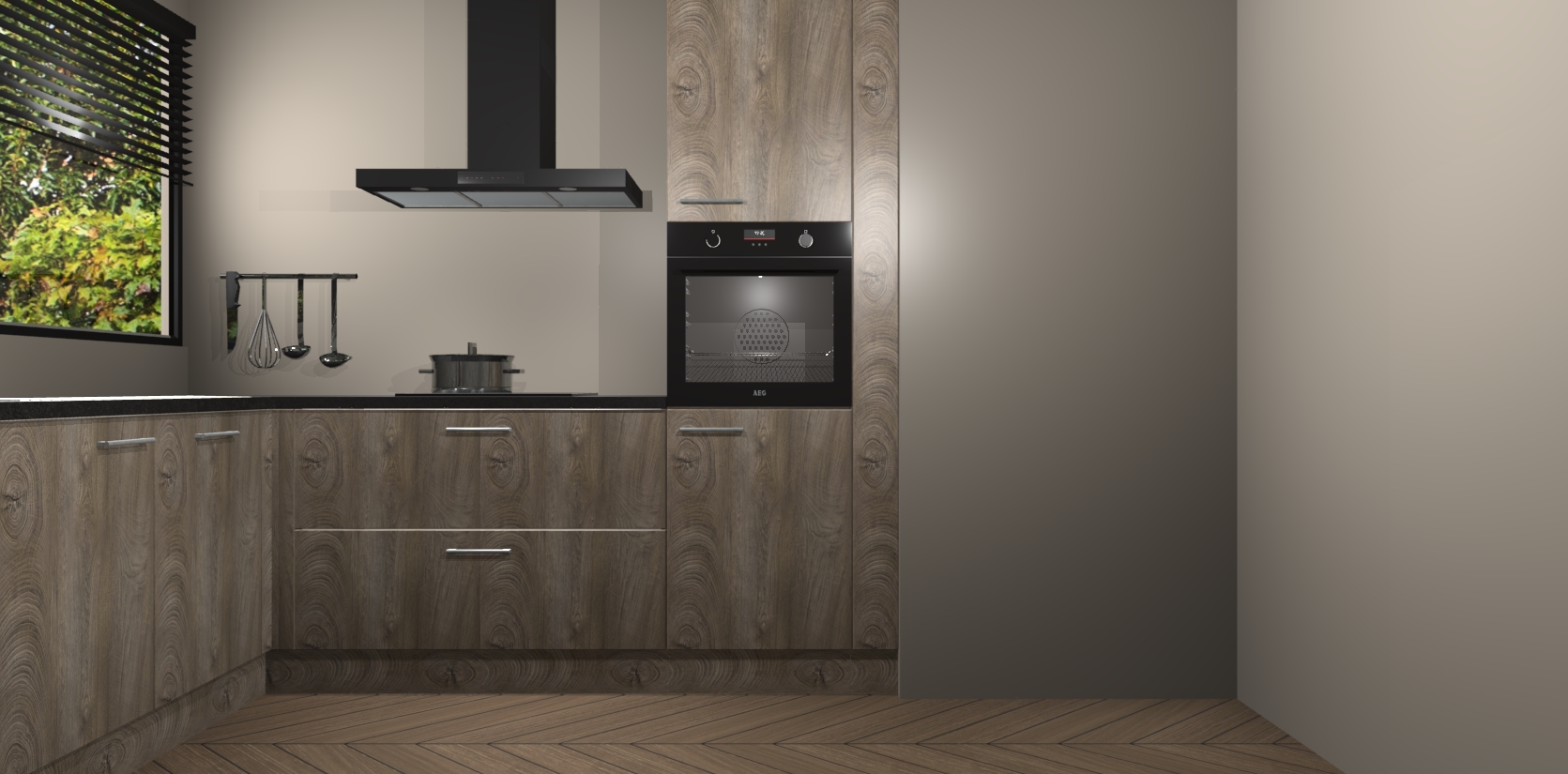 Met een modern, tijdloos design en ruime opslagruimte, zult u zich in no-time thuis voelen in uw nieuwe keuken. Uw leven wordt eenvoudiger met de soft-close deuren die voor het ultieme stille comfort zorgen - geen geluid dat u stoort terwijl u kookt. Ook is de keuken voorzien van 5 ingebouwde apparaten: een oven, inductie kookplaat, afzuigkap, vaatwasser en koelkast. Deze kunnen gemakkelijk na bestelling worden bijgewerkt naar AEG - waardoor uw luxe ervaring compleet is.