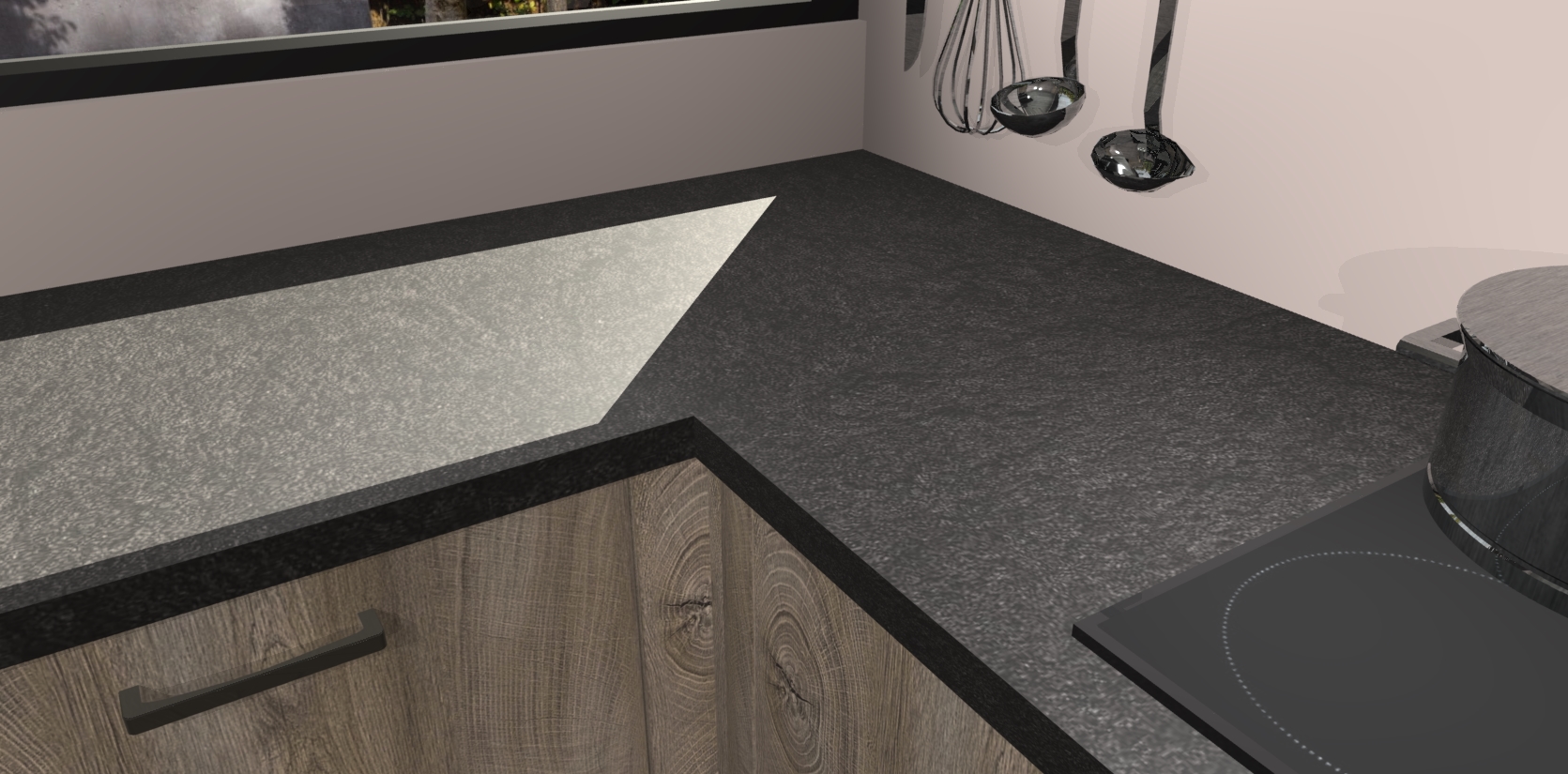- Bij een hoekwerkblad zijn de hoeken in gevreesd en op maat gemaakt