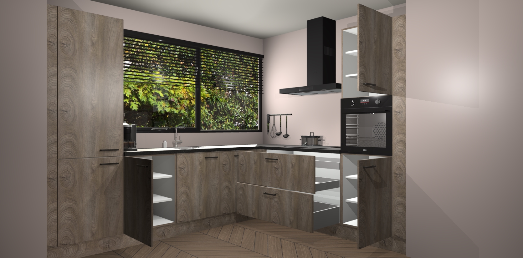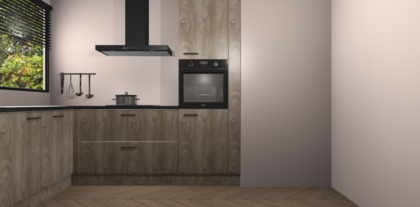 Met een modern, tijdloos design en ruime opslagruimte, zult u zich in no-time thuis voelen in uw nieuwe keuken. Uw leven wordt eenvoudiger met de soft-close deuren die voor het ultieme stille comfort zorgen - geen geluid dat u stoort terwijl u kookt. Ook is de keuken voorzien van 5 ingebouwde apparaten: een oven, inductie kookplaat, afzuigkap, vaatwasser en koelkast. Deze kunnen gemakkelijk na bestelling worden bijgewerkt naar AEG - waardoor uw luxe ervaring compleet is.