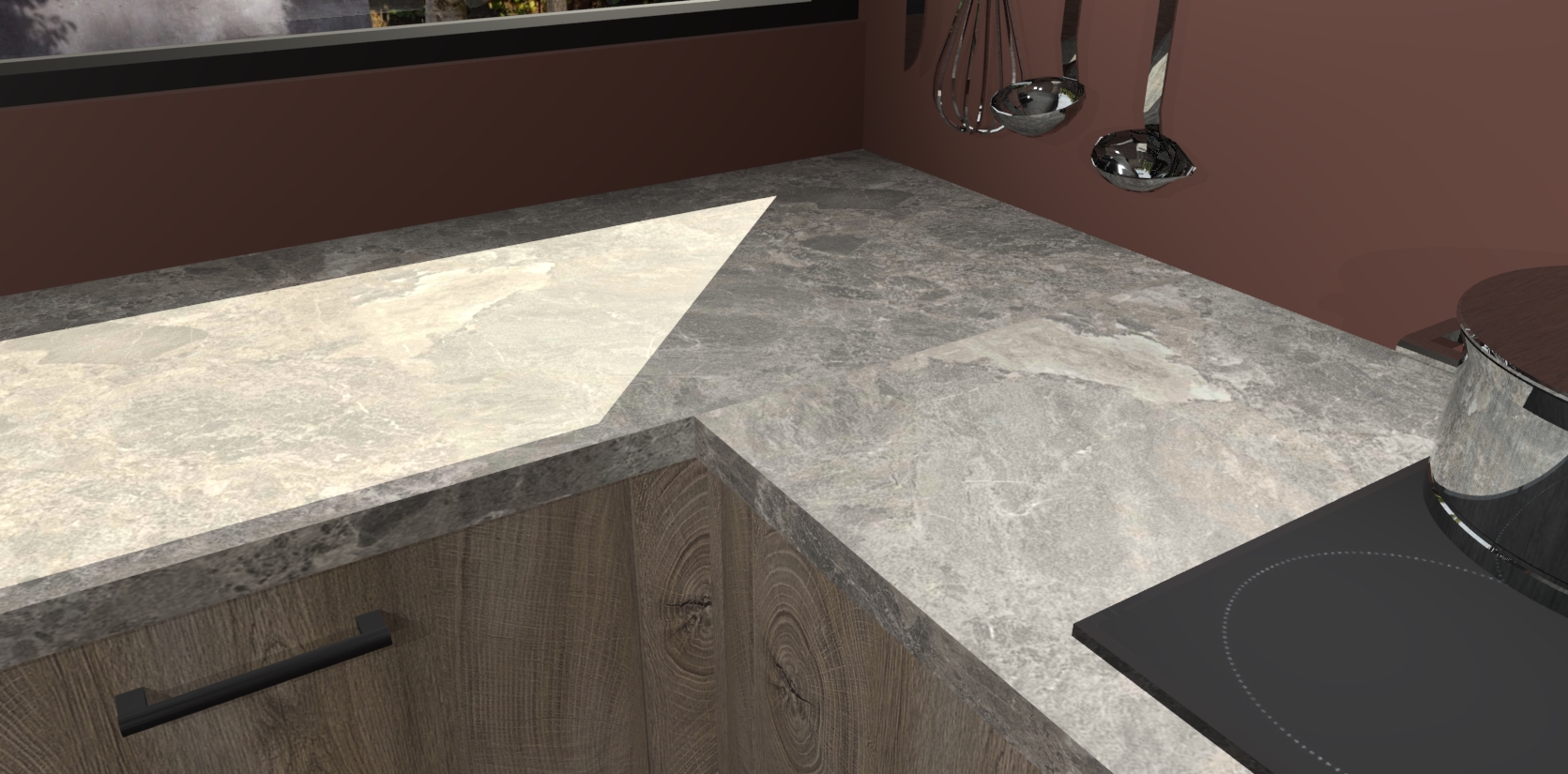 - Bij een hoekwerkblad zijn de hoeken in gevreesd en op maat gemaakt