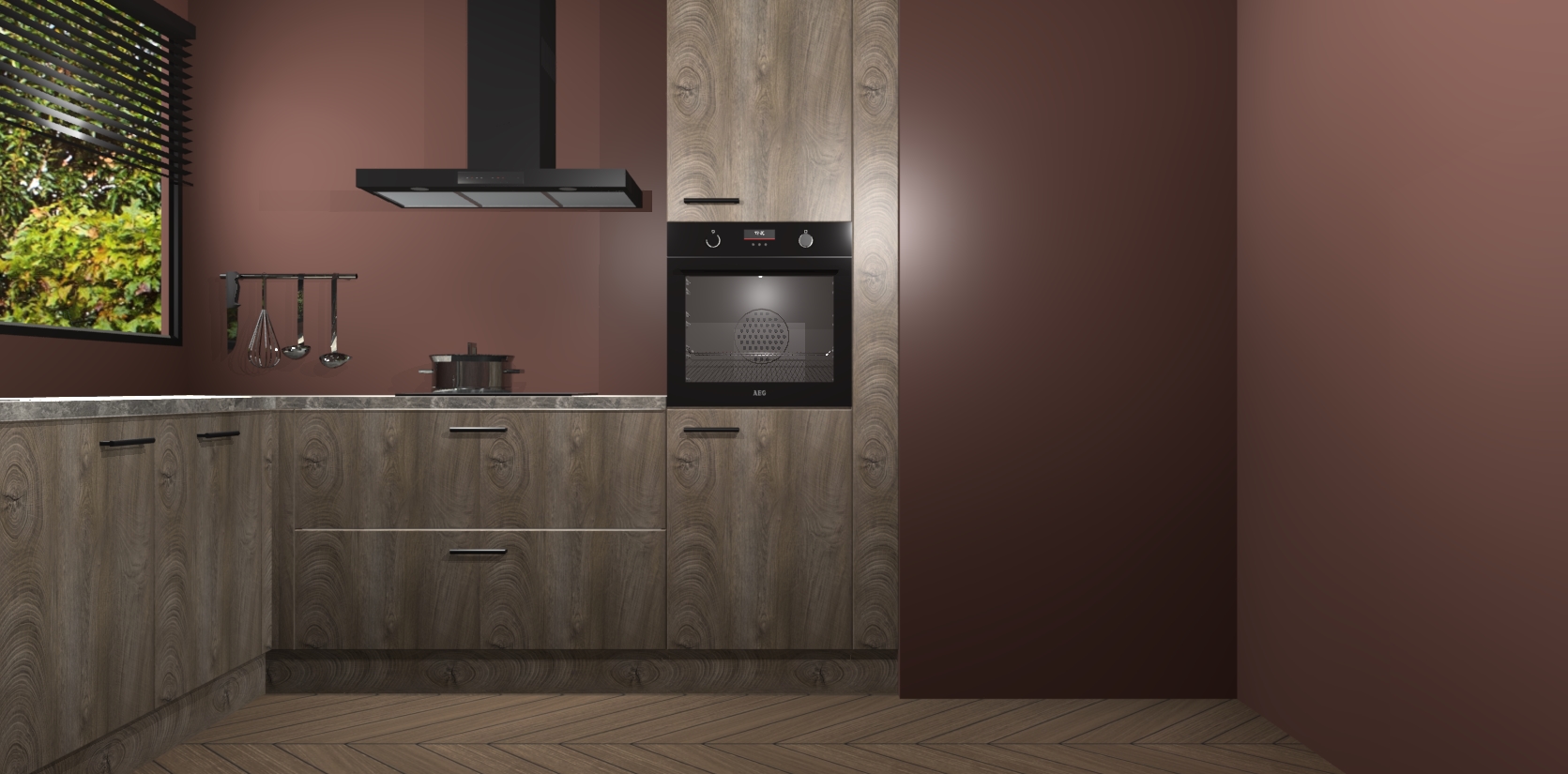 Met een modern, tijdloos design en ruime opslagruimte, zult u zich in no-time thuis voelen in uw nieuwe keuken. Uw leven wordt eenvoudiger met de soft-close deuren die voor het ultieme stille comfort zorgen - geen geluid dat u stoort terwijl u kookt. Ook is de keuken voorzien van 5 ingebouwde apparaten: een oven, inductie kookplaat, afzuigkap, vaatwasser en koelkast. Deze kunnen gemakkelijk na bestelling worden bijgewerkt naar AEG - waardoor uw luxe ervaring compleet is.
