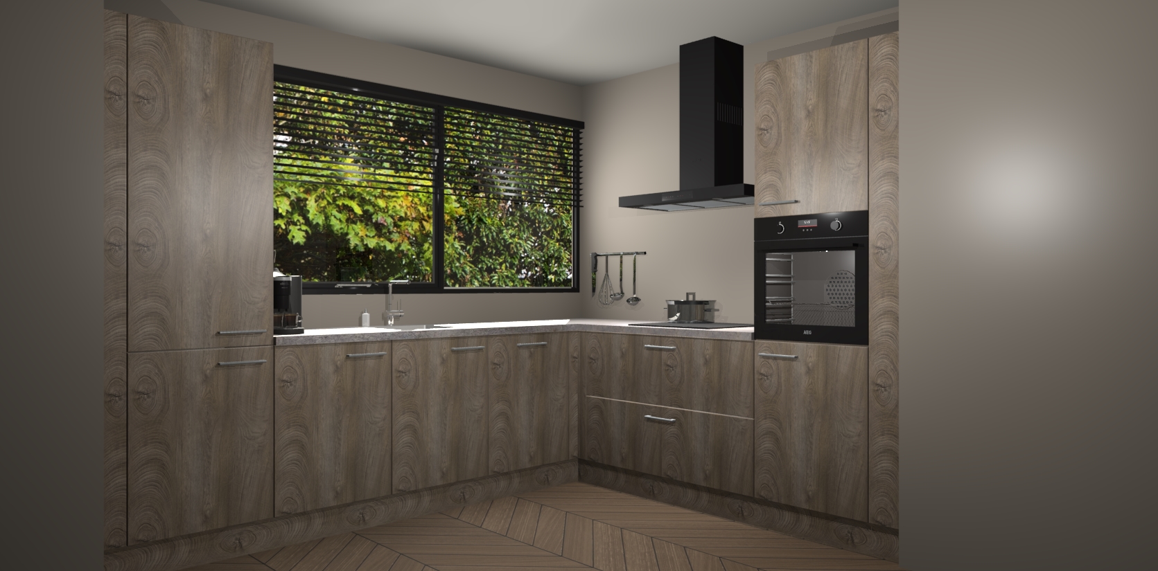 Met een modern, tijdloos design en ruime opslagruimte, zult u zich in no-time thuis voelen in uw nieuwe keuken. Uw leven wordt eenvoudiger met de soft-close deuren die voor het ultieme stille comfort zorgen - geen geluid dat u stoort terwijl u kookt. Ook is de keuken voorzien van 5 ingebouwde apparaten: een oven, inductie kookplaat, afzuigkap, vaatwasser en koelkast. Deze kunnen gemakkelijk na bestelling worden bijgewerkt naar AEG - waardoor uw luxe ervaring compleet is.