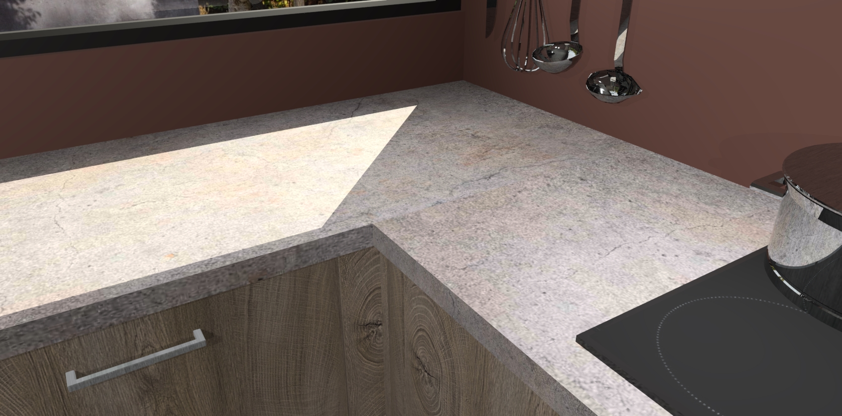 - Bij een hoekwerkblad zijn de hoeken in gevreesd en op maat gemaakt