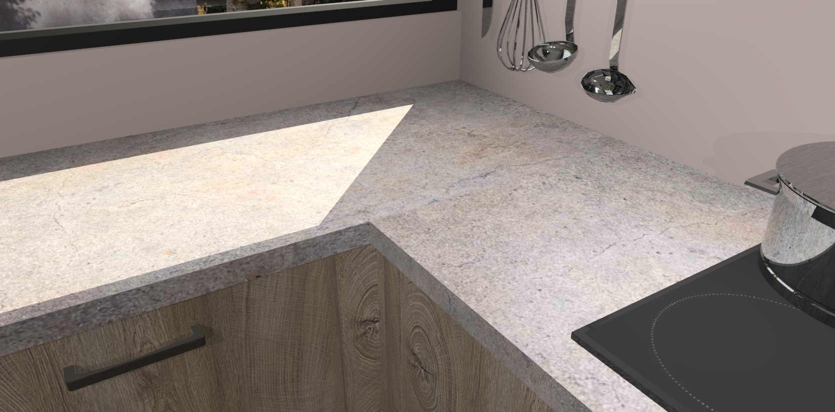 • Bij een hoekwerkblad zijn de hoeken in gevreesd en op maat gemaakt