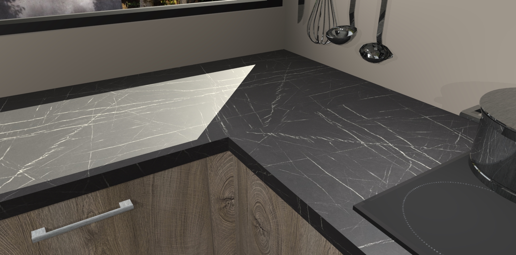 - Bij een hoekwerkblad zijn de hoeken in gevreesd en op maat gemaakt