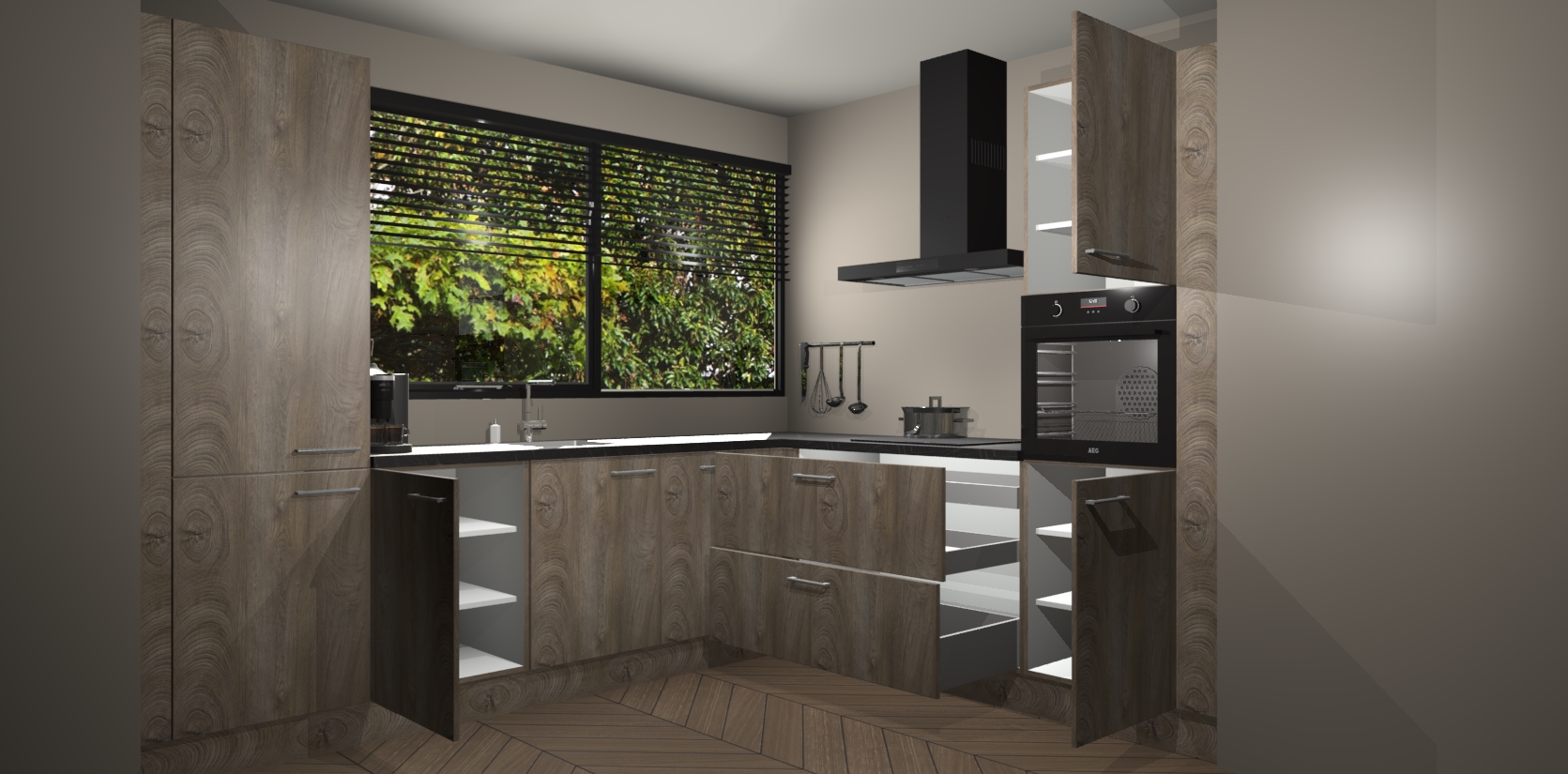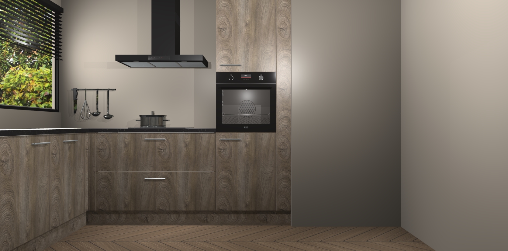 Met een modern, tijdloos design en ruime opslagruimte, zult u zich in no-time thuis voelen in uw nieuwe keuken. Uw leven wordt eenvoudiger met de soft-close deuren die voor het ultieme stille comfort zorgen - geen geluid dat u stoort terwijl u kookt. Ook is de keuken voorzien van 5 ingebouwde apparaten: een oven, inductie kookplaat, afzuigkap, vaatwasser en koelkast. Deze kunnen gemakkelijk na bestelling worden bijgewerkt naar AEG - waardoor uw luxe ervaring compleet is.