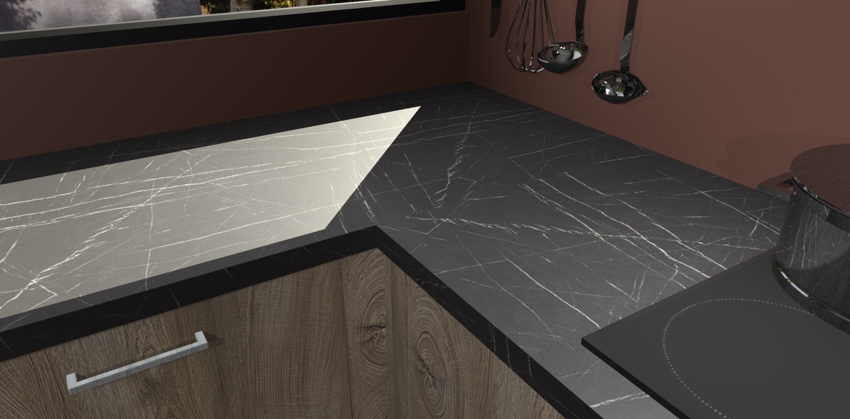 - Bij een hoekwerkblad zijn de hoeken in gevreesd en op maat gemaakt
