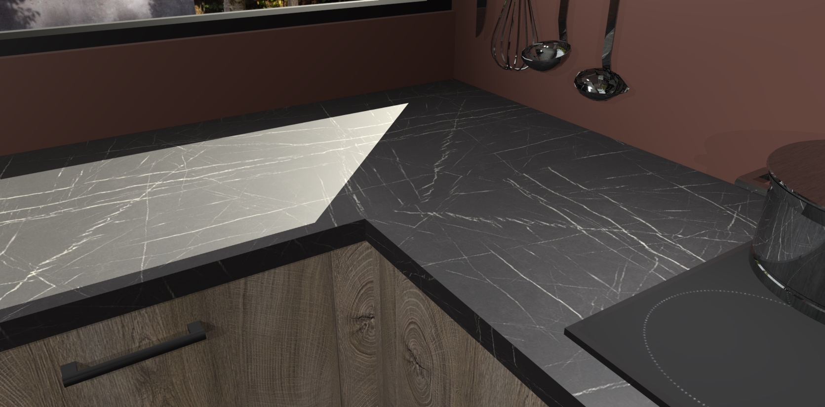 - Bij een hoekwerkblad zijn de hoeken in gevreesd en op maat gemaakt