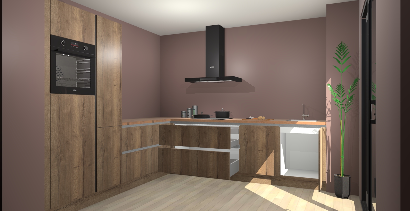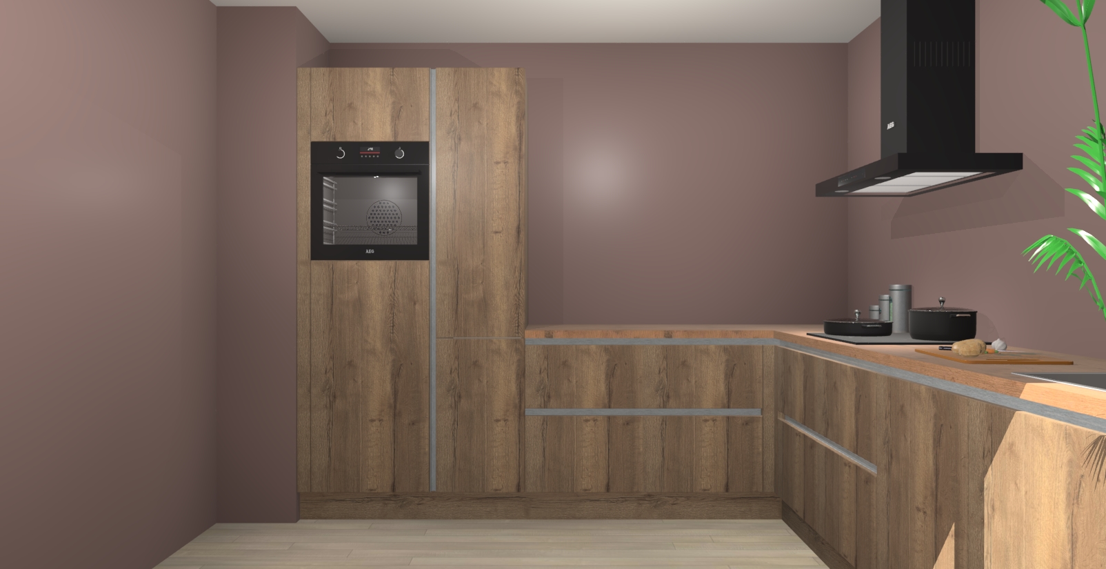 Laat u verrassen door de nieuwste en meest innovatieve keuken van dit moment: De Chocolade Eiken greeploze keuken Antibes. Deze chique keuken straalt een stijlvolle sfeer uit die zeker bewondering zal oogsten bij uw gasten. Als u op zoek bent naar voldoende opbergruimte voor al uw keukengadgets en -gerei, dan is dit de perfecte oplossing. Met ingebouwde apparatuur zoals een oven, inductiekookplaat, afzuigkap, vaatwasser en koelkast! U krijgt niet alleen veel opbergruimte, maar ook een betrouwbaar soft close-deursysteem dat ervoor zorgt dat er nooit meer kastdeuren dichtslaan!