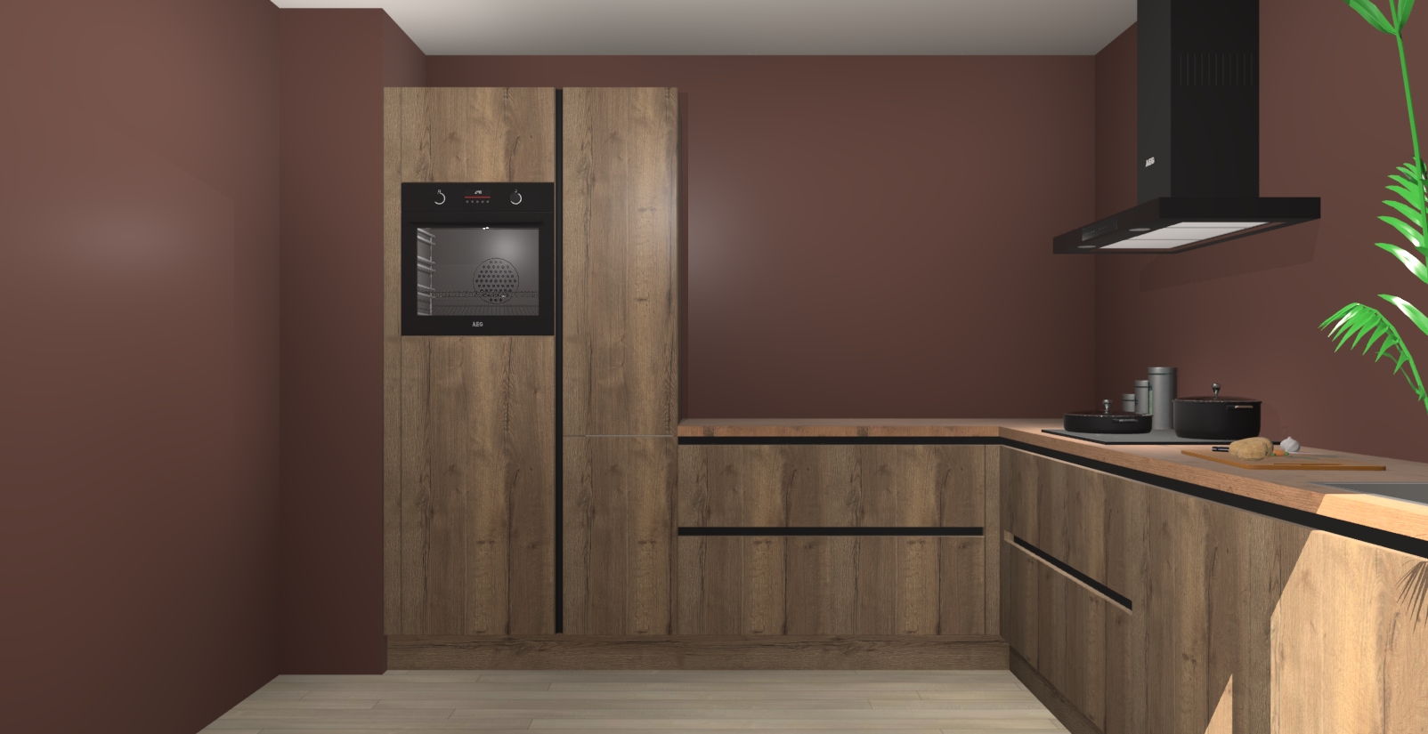 Laat u verrassen door de nieuwste en meest innovatieve keuken van dit moment: De Chocolade Eiken greeploze keuken Antibes. Deze chique keuken straalt een stijlvolle sfeer uit die zeker bewondering zal oogsten bij uw gasten. Als u op zoek bent naar voldoende opbergruimte voor al uw keukengadgets en -gerei, dan is dit de perfecte oplossing. Met ingebouwde apparatuur zoals een oven, inductiekookplaat, afzuigkap, vaatwasser en koelkast! U krijgt niet alleen veel opbergruimte, maar ook een betrouwbaar soft close-deursysteem dat ervoor zorgt dat er nooit meer kastdeuren dichtslaan!