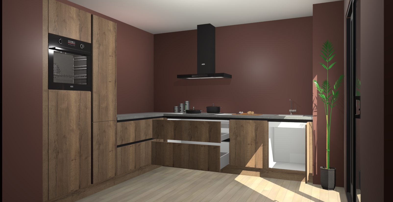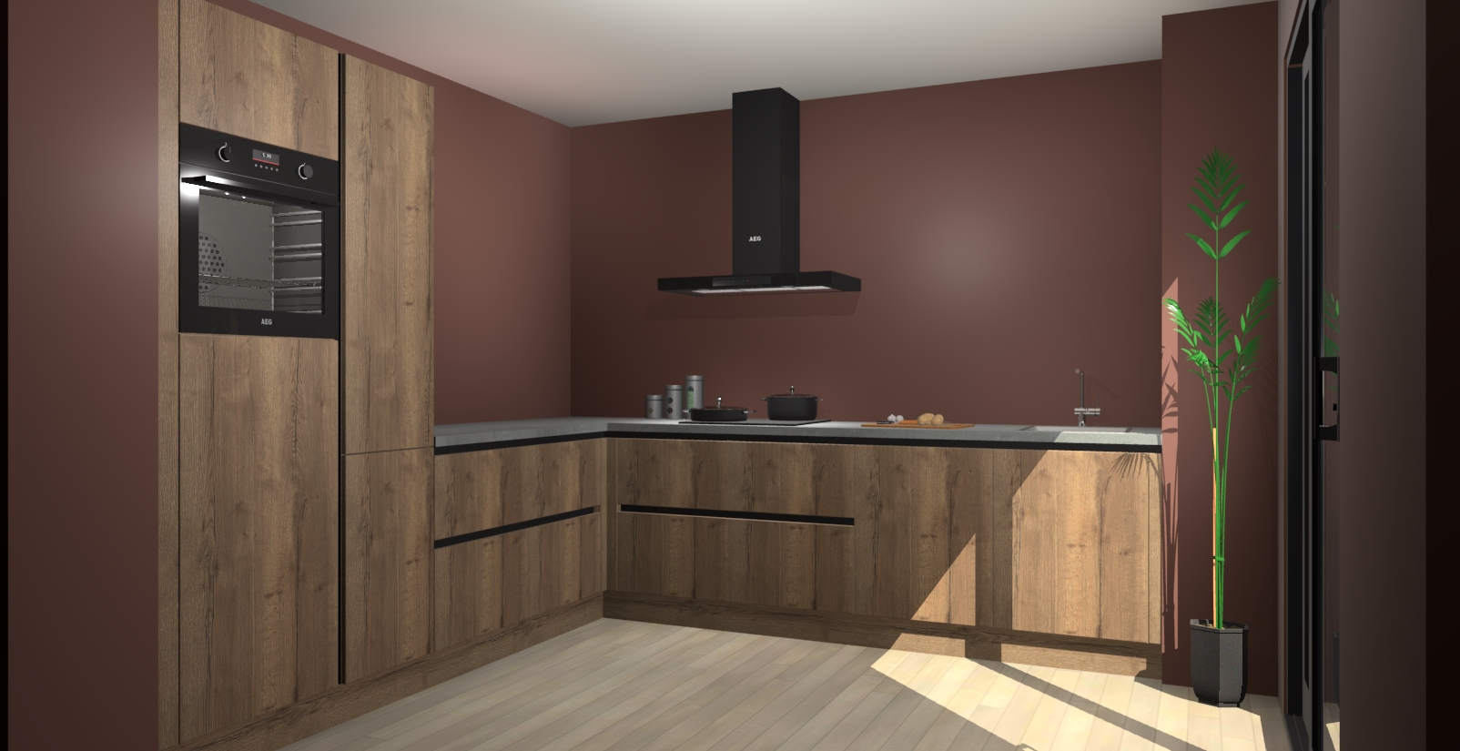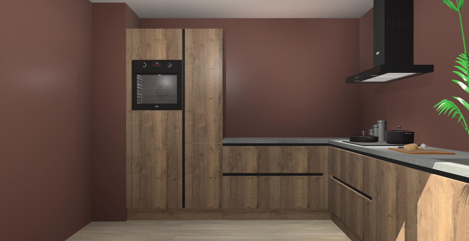 Laat u verrassen door de nieuwste en meest innovatieve keuken van dit moment: De Chocolade Eiken greeploze keuken Antibes. Deze chique keuken straalt een stijlvolle sfeer uit die zeker bewondering zal oogsten bij uw gasten. Als u op zoek bent naar voldoende opbergruimte voor al uw keukengadgets en -gerei, dan is dit de perfecte oplossing. Met ingebouwde apparatuur zoals een oven, inductiekookplaat, afzuigkap, vaatwasser en koelkast! U krijgt niet alleen veel opbergruimte, maar ook een betrouwbaar soft close-deursysteem dat ervoor zorgt dat er nooit meer kastdeuren dichtslaan!