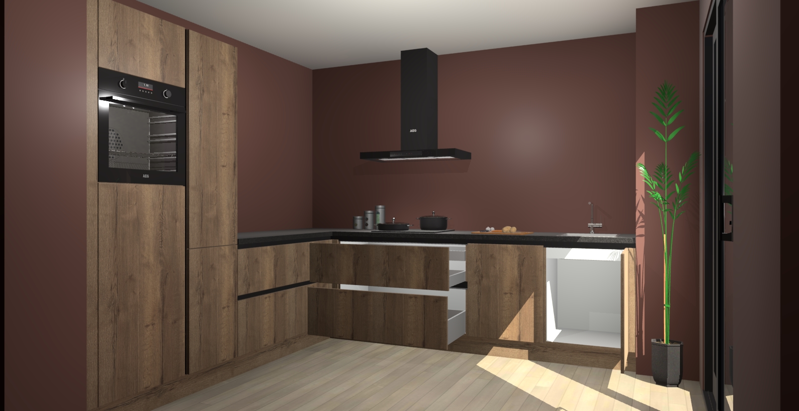 Laat u verrassen door de nieuwste en meest innovatieve keuken van dit moment: De Chocolade Eiken greeploze keuken Antibes. Deze chique keuken straalt een stijlvolle sfeer uit die zeker bewondering zal oogsten bij uw gasten. Als u op zoek bent naar voldoende opbergruimte voor al uw keukengadgets en -gerei, dan is dit de perfecte oplossing. Met ingebouwde apparatuur zoals een oven, inductiekookplaat, afzuigkap, vaatwasser en koelkast! U krijgt niet alleen veel opbergruimte, maar ook een betrouwbaar soft close-deursysteem dat ervoor zorgt dat er nooit meer kastdeuren dichtslaan!