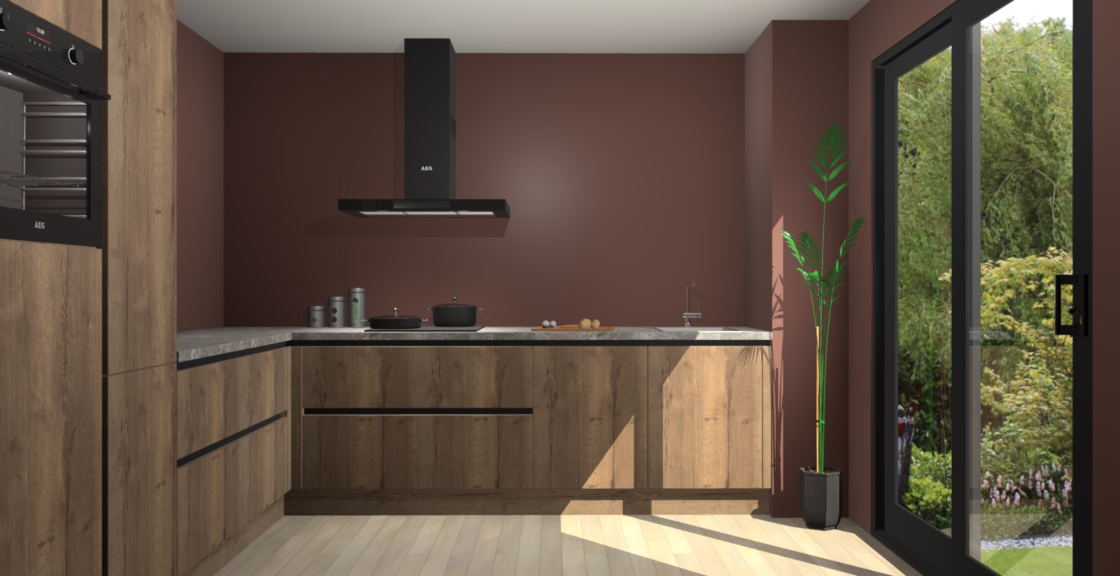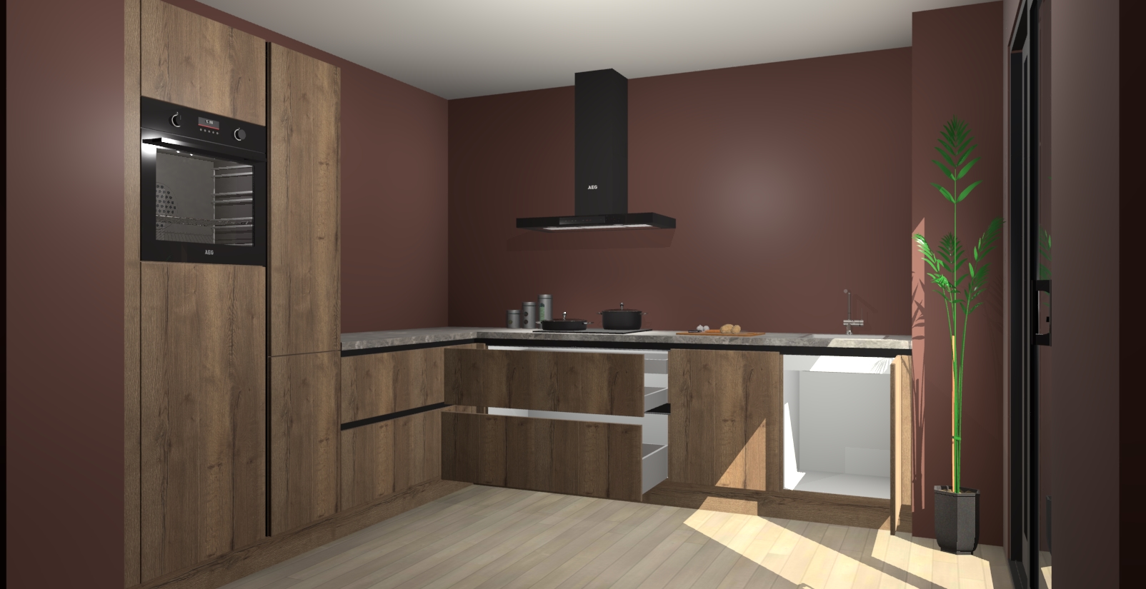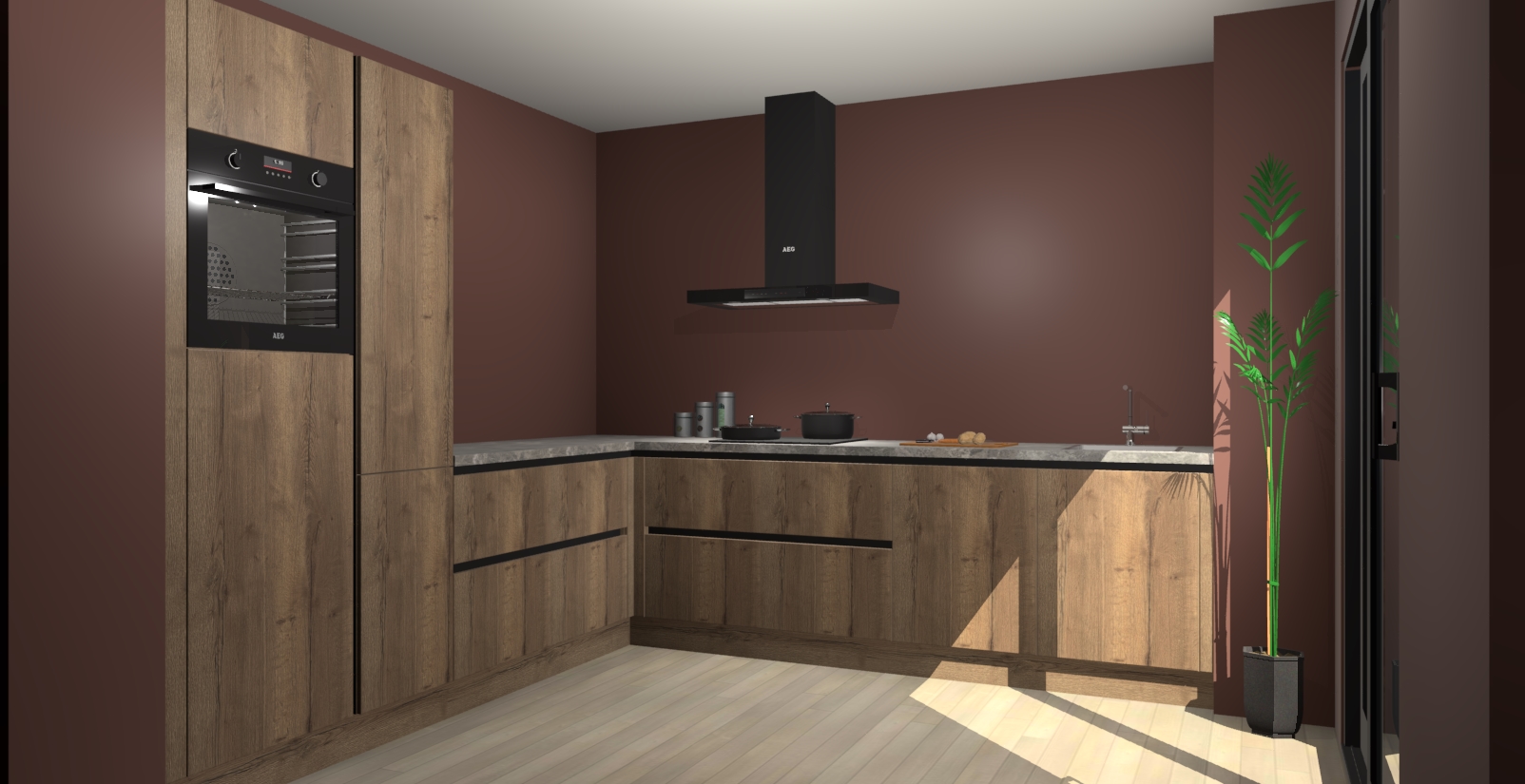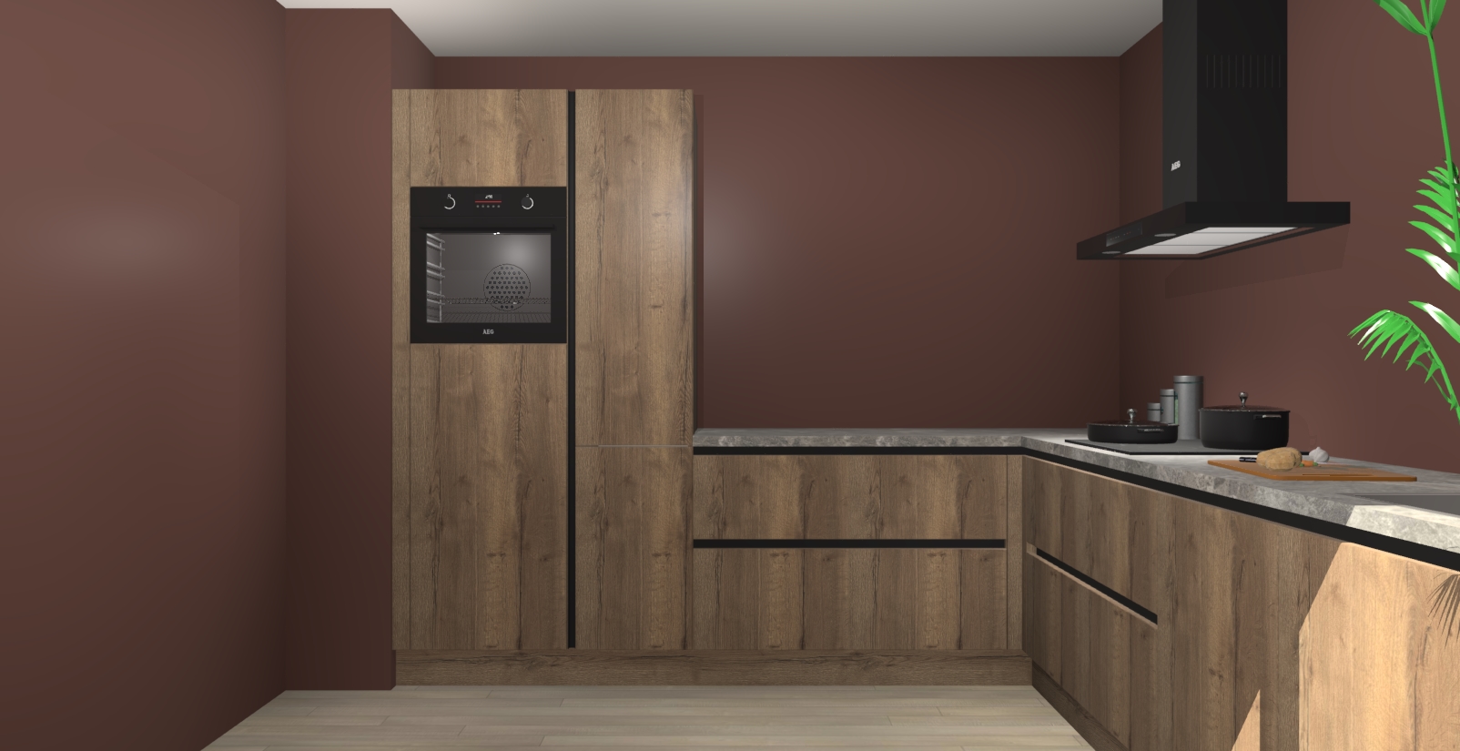Laat u verrassen door de nieuwste en meest innovatieve keuken van dit moment: De Chocolade Eiken greeploze keuken Antibes. Deze chique keuken straalt een stijlvolle sfeer uit die zeker bewondering zal oogsten bij uw gasten. Als u op zoek bent naar voldoende opbergruimte voor al uw keukengadgets en -gerei, dan is dit de perfecte oplossing. Met ingebouwde apparatuur zoals een oven, inductiekookplaat, afzuigkap, vaatwasser en koelkast! U krijgt niet alleen veel opbergruimte, maar ook een betrouwbaar soft close-deursysteem dat ervoor zorgt dat er nooit meer kastdeuren dichtslaan!