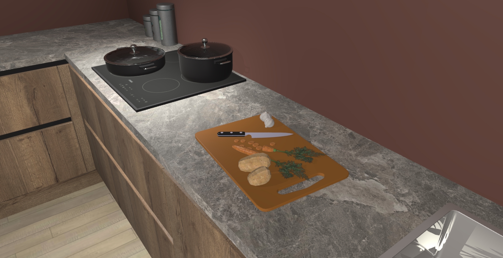 Inclusief plinten, stelpoten en werkblad