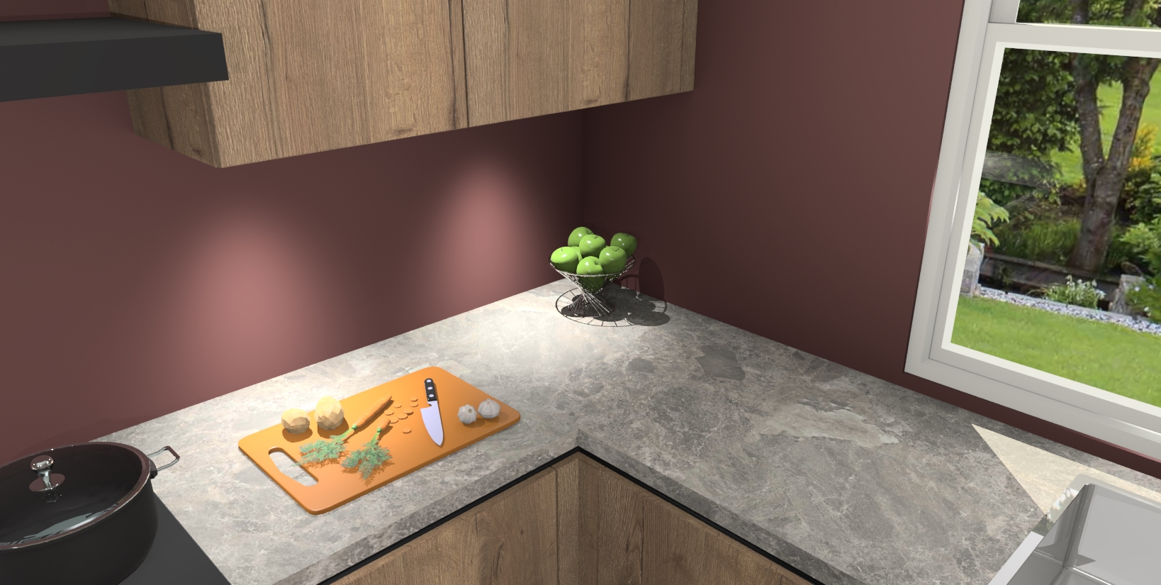 - Bij een hoekwerkblad zijn de hoeken in gevreesd en op maat gemaakt