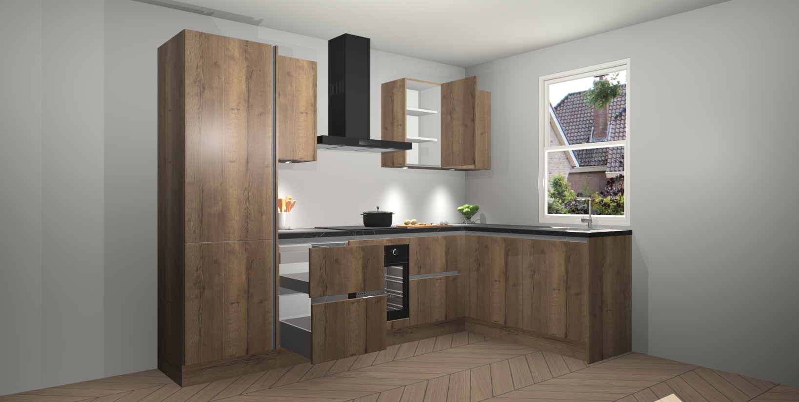 In deze box zijn alle kleuren verzameld van de deuren en werkbladen. Vraag de gratis kleurenbox aan en kijk thuis rustig verder!