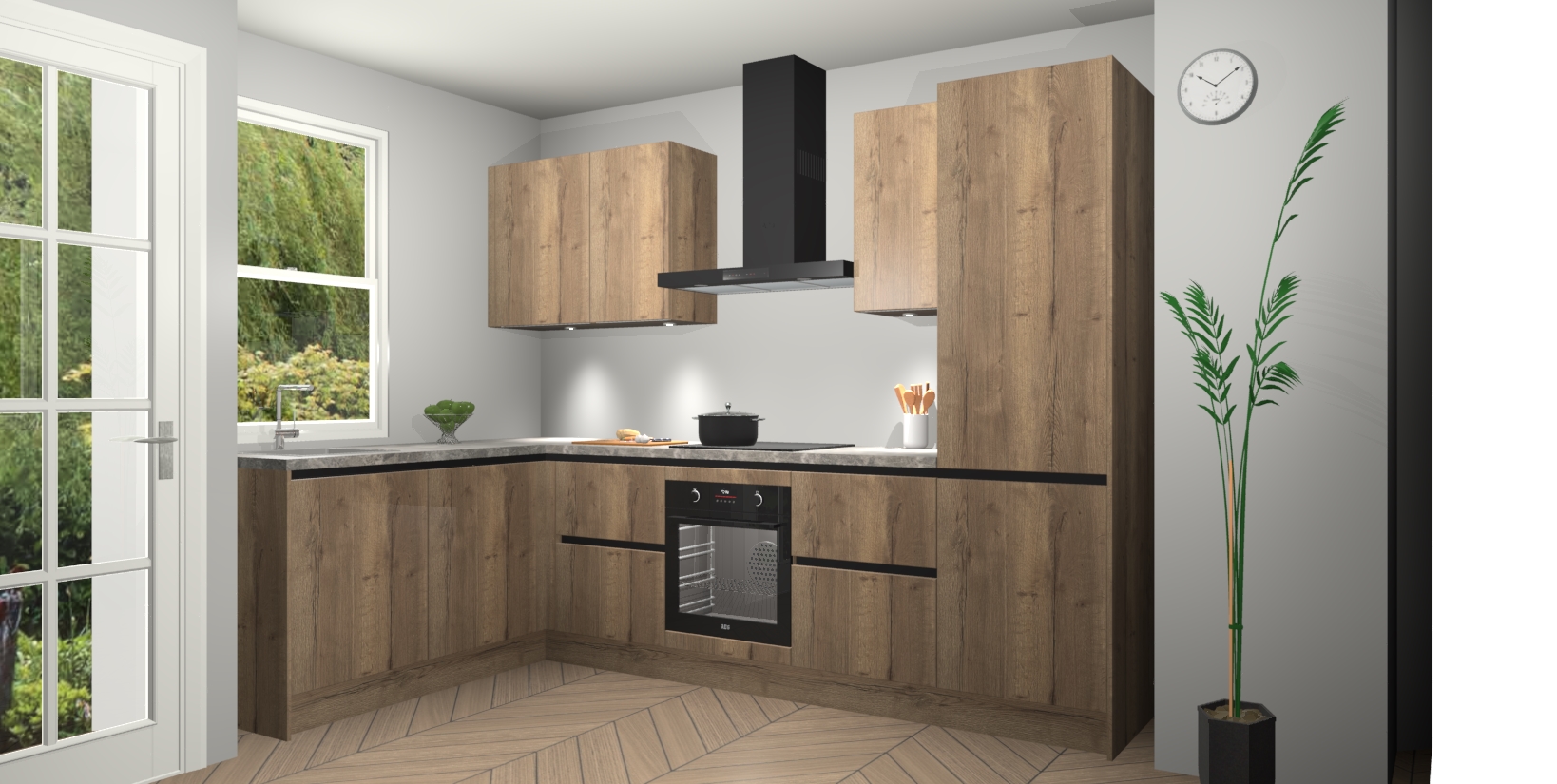 U hoeft zich ook geen zorgen te maken over een gebrek aan opbergruimte, want deze keuken heeft voldoende opbergmogelijkheden zowel boven als onder het aanrecht. Om het leven nog makkelijker te maken, wordt deze moderne hoekkeuken geleverd met 5 ingebouwde apparaten, waaronder een oven, inductiekookplaat, afzuigkap, vaatwasser en koelkast, zodat u in een mum van tijd klaar bent voor actie!