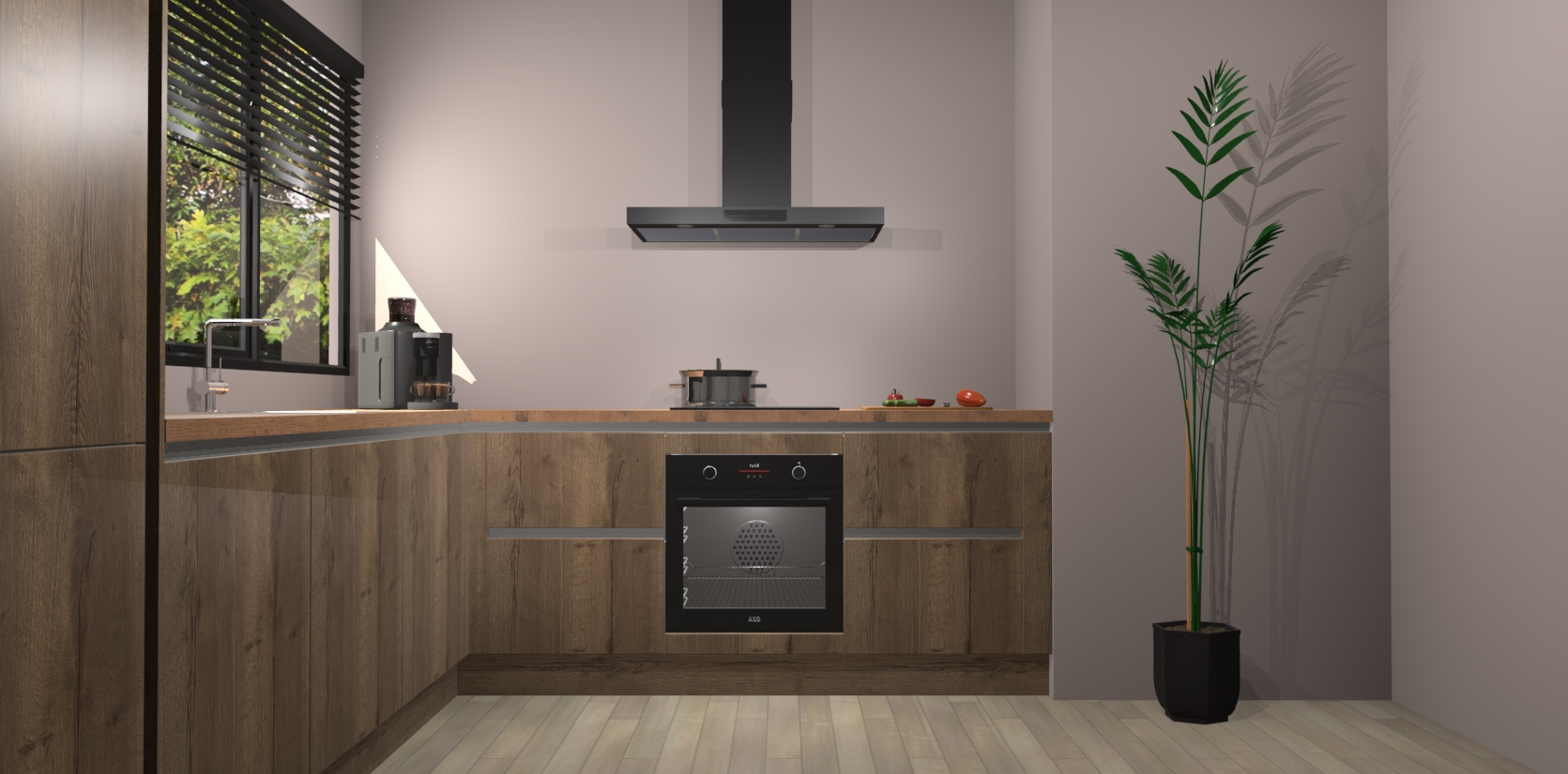 Met een modern, tijdloos design en ruime opslagruimte, zult u zich in no-time thuis voelen in uw nieuwe keuken. Uw leven wordt eenvoudiger met de soft-close deuren die voor het ultieme stille comfort zorgen - geen geluid dat u stoort terwijl u kookt. Ook is de keuken voorzien van 5 ingebouwde apparaten: een oven, inductie kookplaat, afzuigkap, vaatwasser en koelkast. Deze kunnen gemakkelijk na bestelling worden bijgewerkt naar AEG - waardoor uw luxe ervaring compleet is.