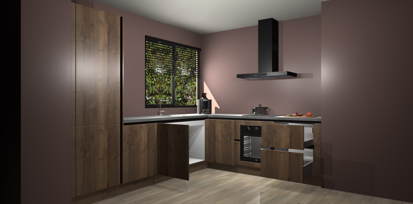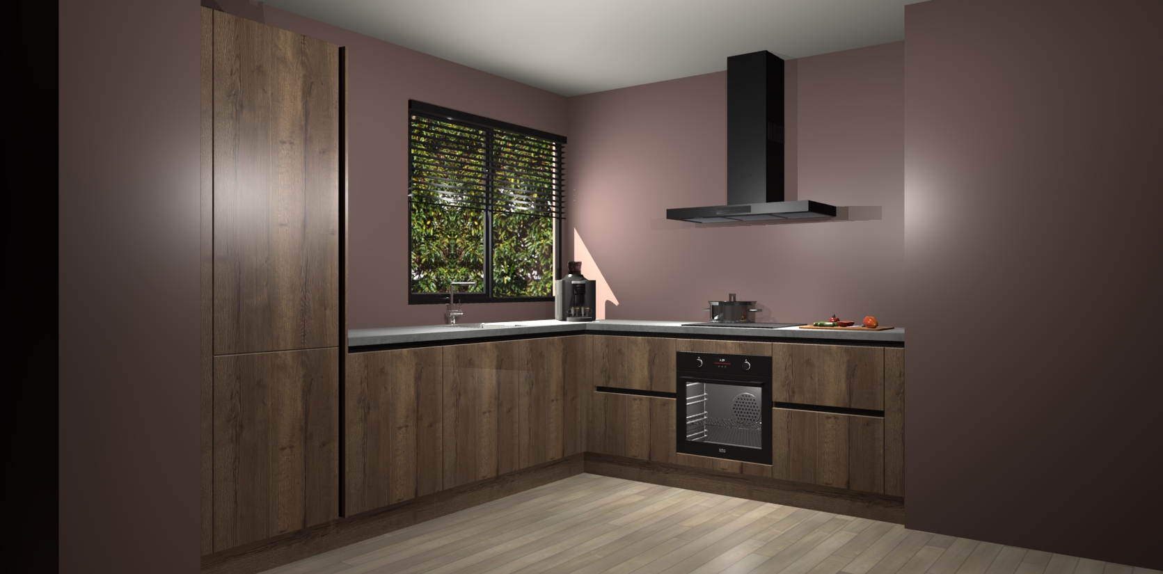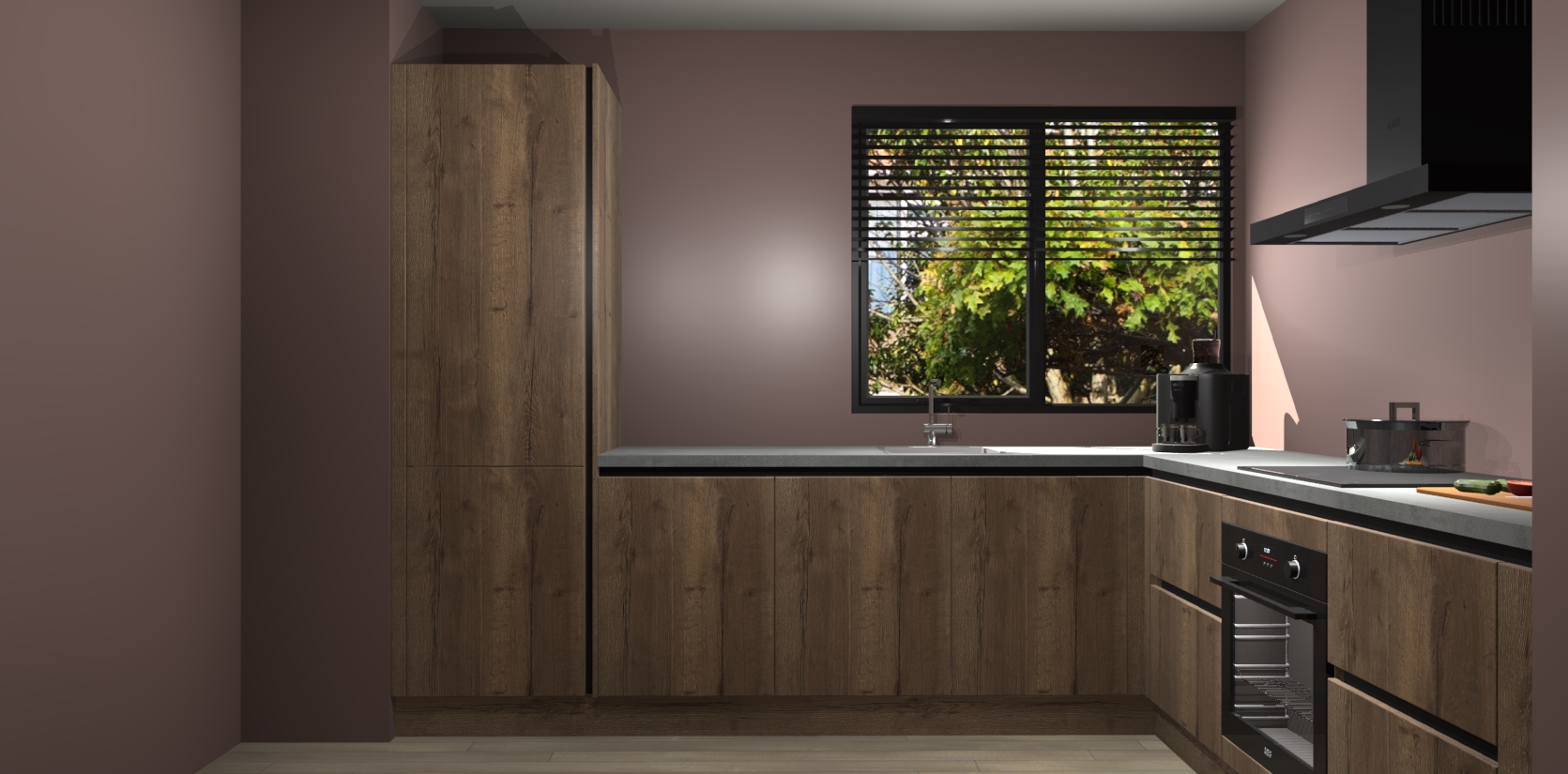 Wij presenteren de revolutie in keukens: de Chocolade Eiken greeploze keuken Benidorm. Met modern design, een tijdloos uiterlijk en kasten die al voor gemonteerd worden geleverd, laat deze stijlvolle keuken uw kookervaring op een hele nieuwe manier transformeren.