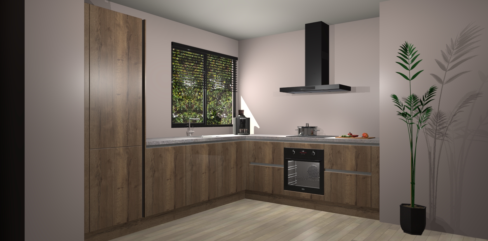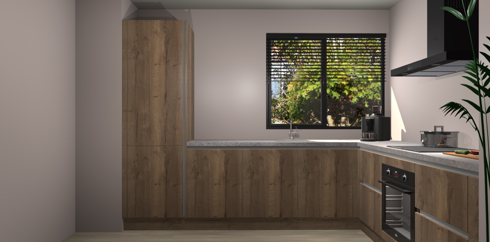 Wij presenteren de revolutie in keukens: de Chocolade Eiken greeploze keuken Benidorm. Met modern design, een tijdloos uiterlijk en kasten die al voor gemonteerd worden geleverd, laat deze stijlvolle keuken uw kookervaring op een hele nieuwe manier transformeren.