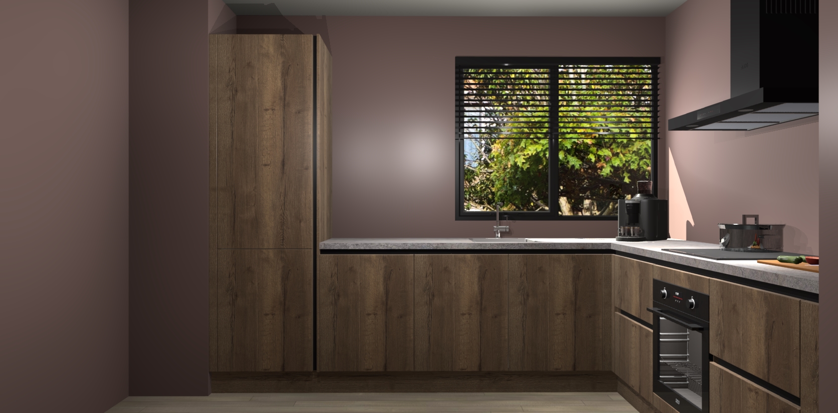 Wij presenteren de revolutie in keukens: de Chocolade Eiken greeploze keuken Benidorm. Met modern design, een tijdloos uiterlijk en kasten die al voor gemonteerd worden geleverd, laat deze stijlvolle keuken uw kookervaring op een hele nieuwe manier transformeren.