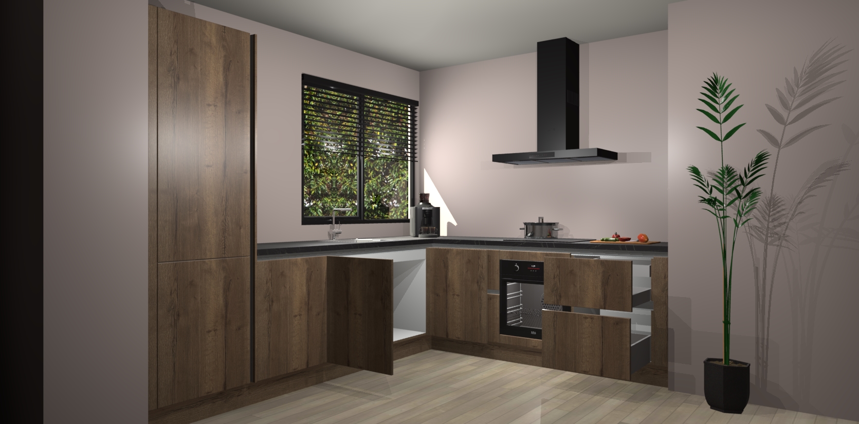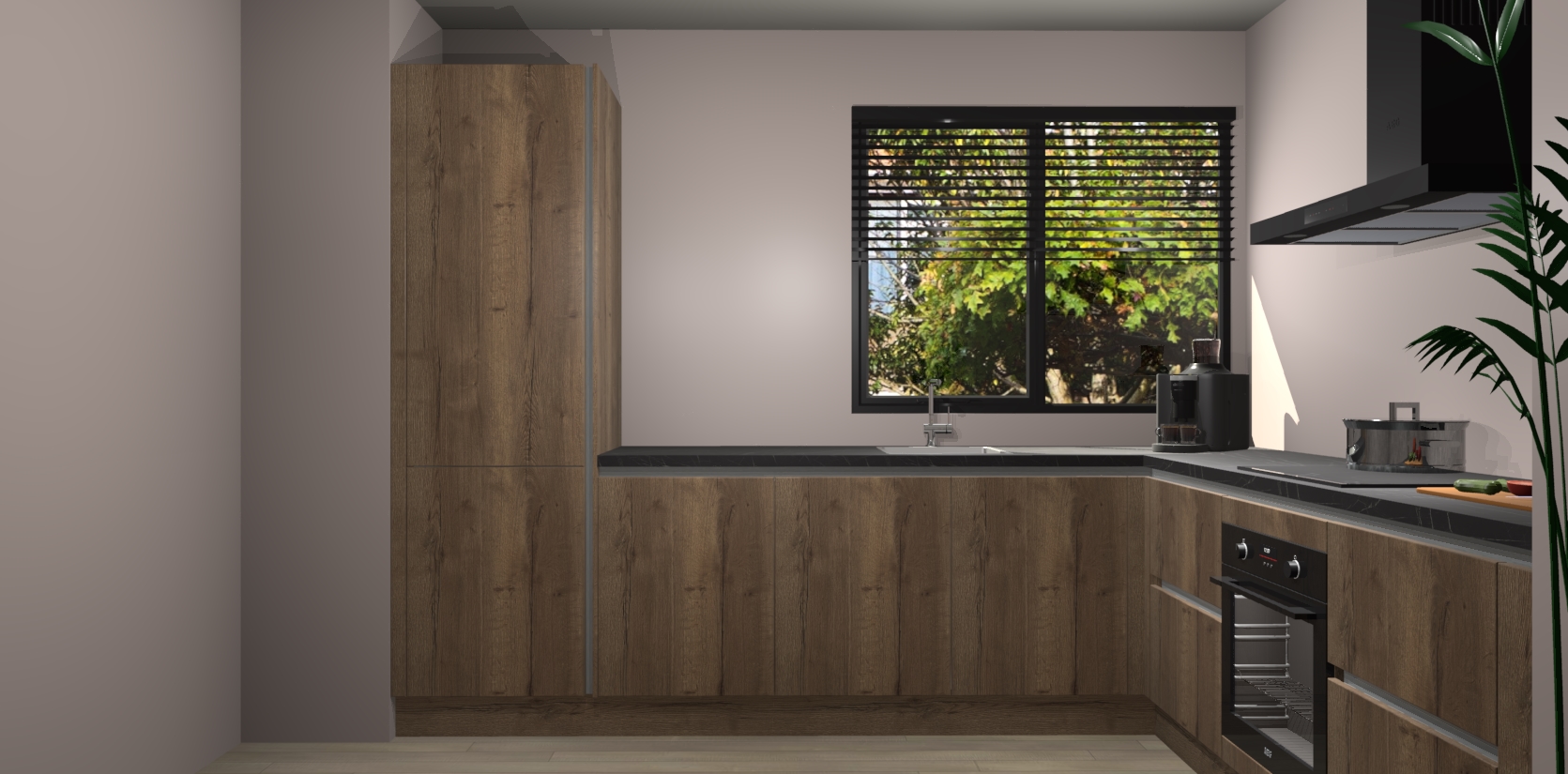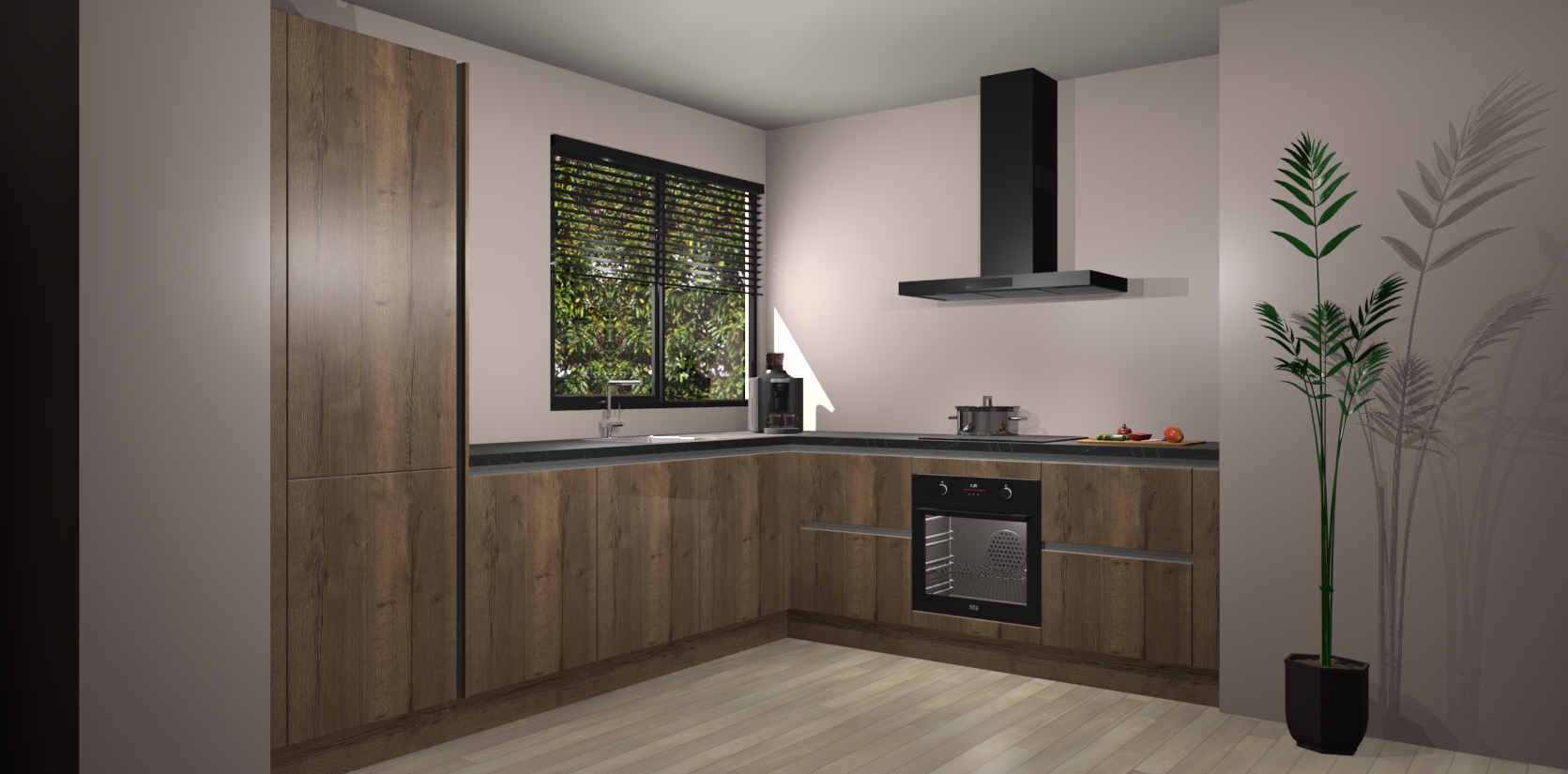 Wij presenteren de revolutie in keukens: de Chocolade Eiken greeploze keuken Benidorm. Met modern design, een tijdloos uiterlijk en kasten die al voor gemonteerd worden geleverd, laat deze stijlvolle keuken uw kookervaring op een hele nieuwe manier transformeren.