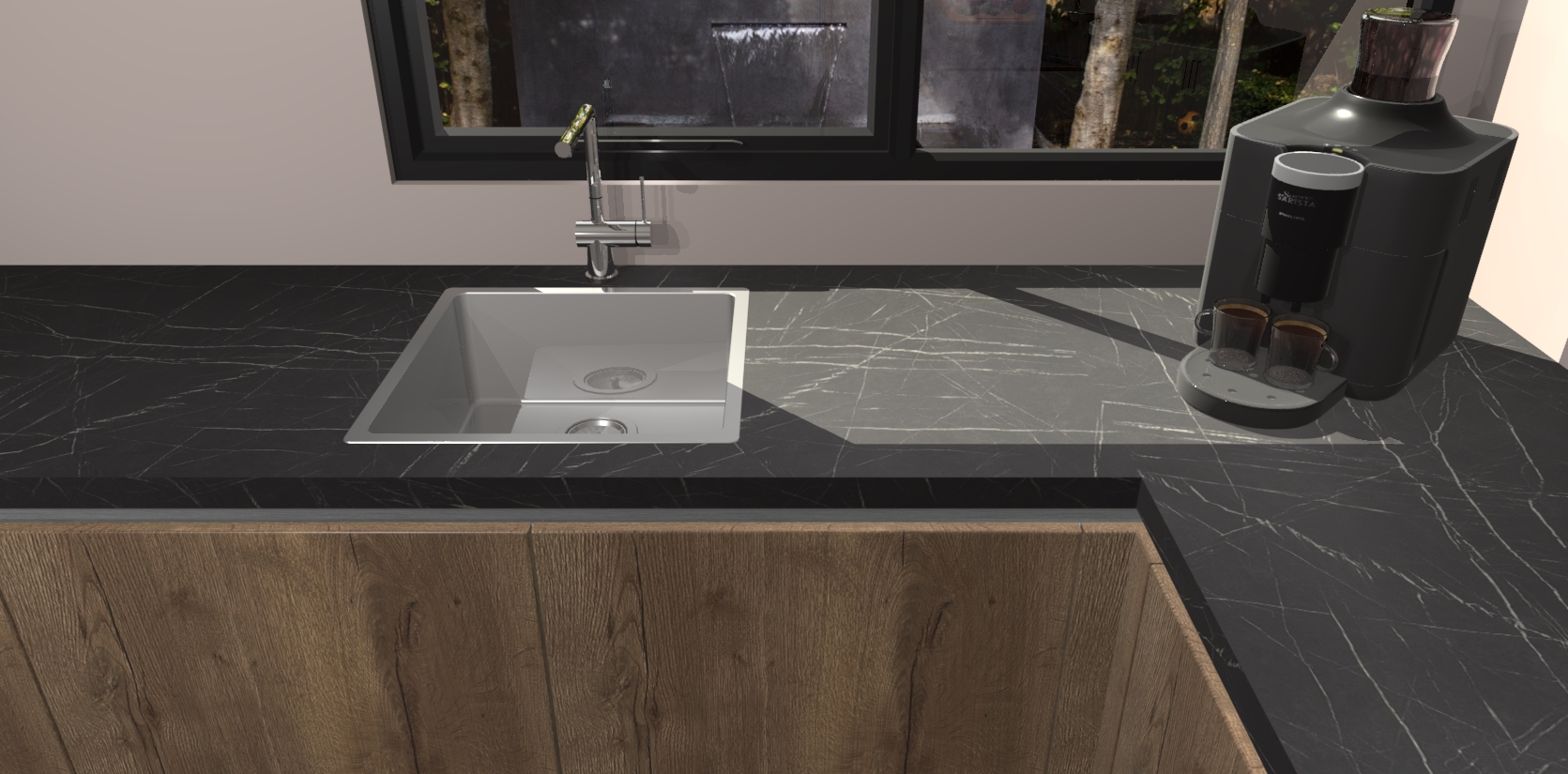 - Bij een hoekwerkblad zijn de hoeken in gevreesd en op maat gemaakt