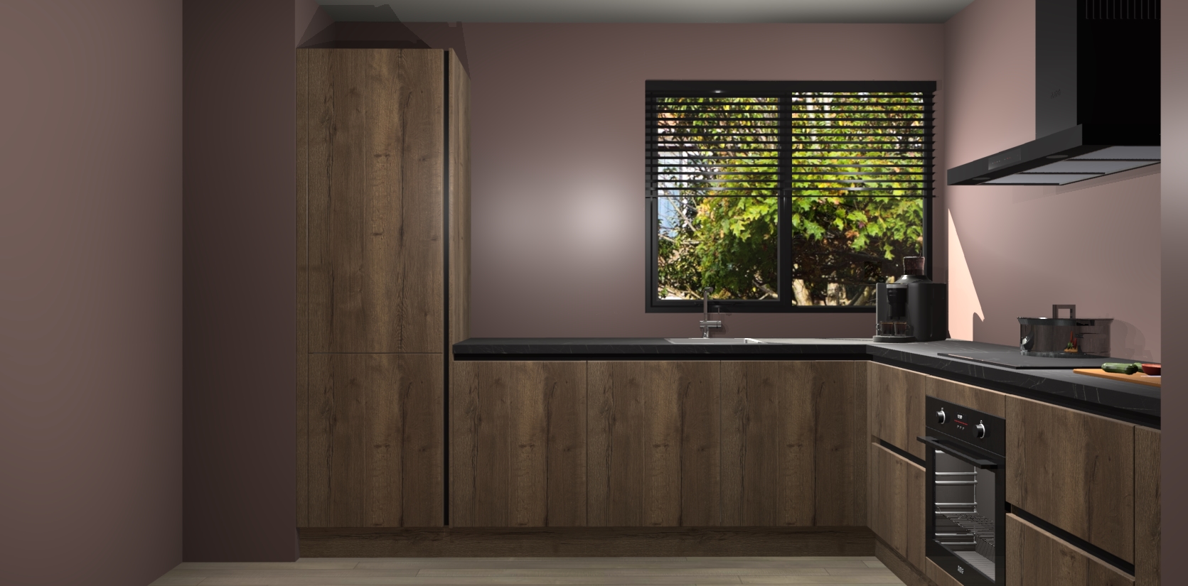 Wij presenteren de revolutie in keukens: de Chocolade Eiken greeploze keuken Benidorm. Met modern design, een tijdloos uiterlijk en kasten die al voor gemonteerd worden geleverd, laat deze stijlvolle keuken uw kookervaring op een hele nieuwe manier transformeren.