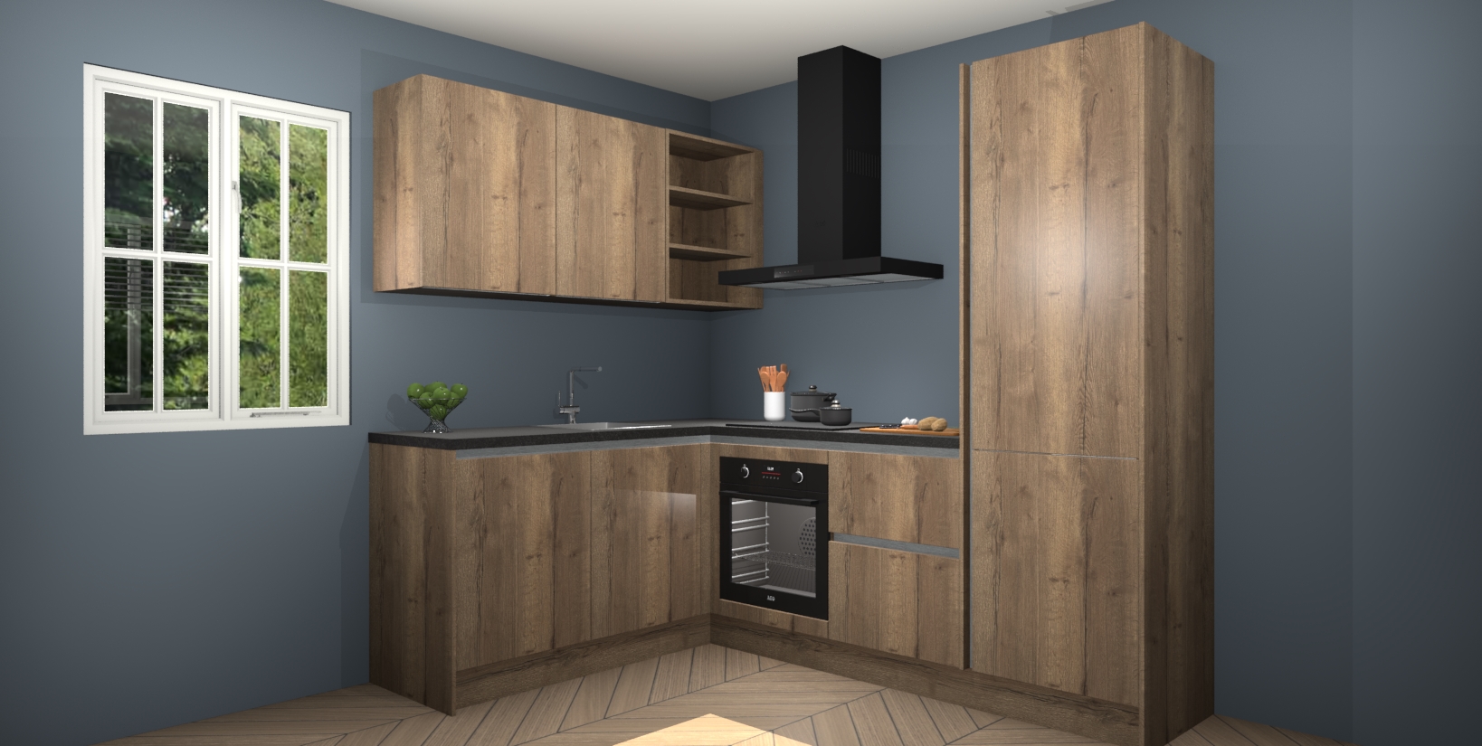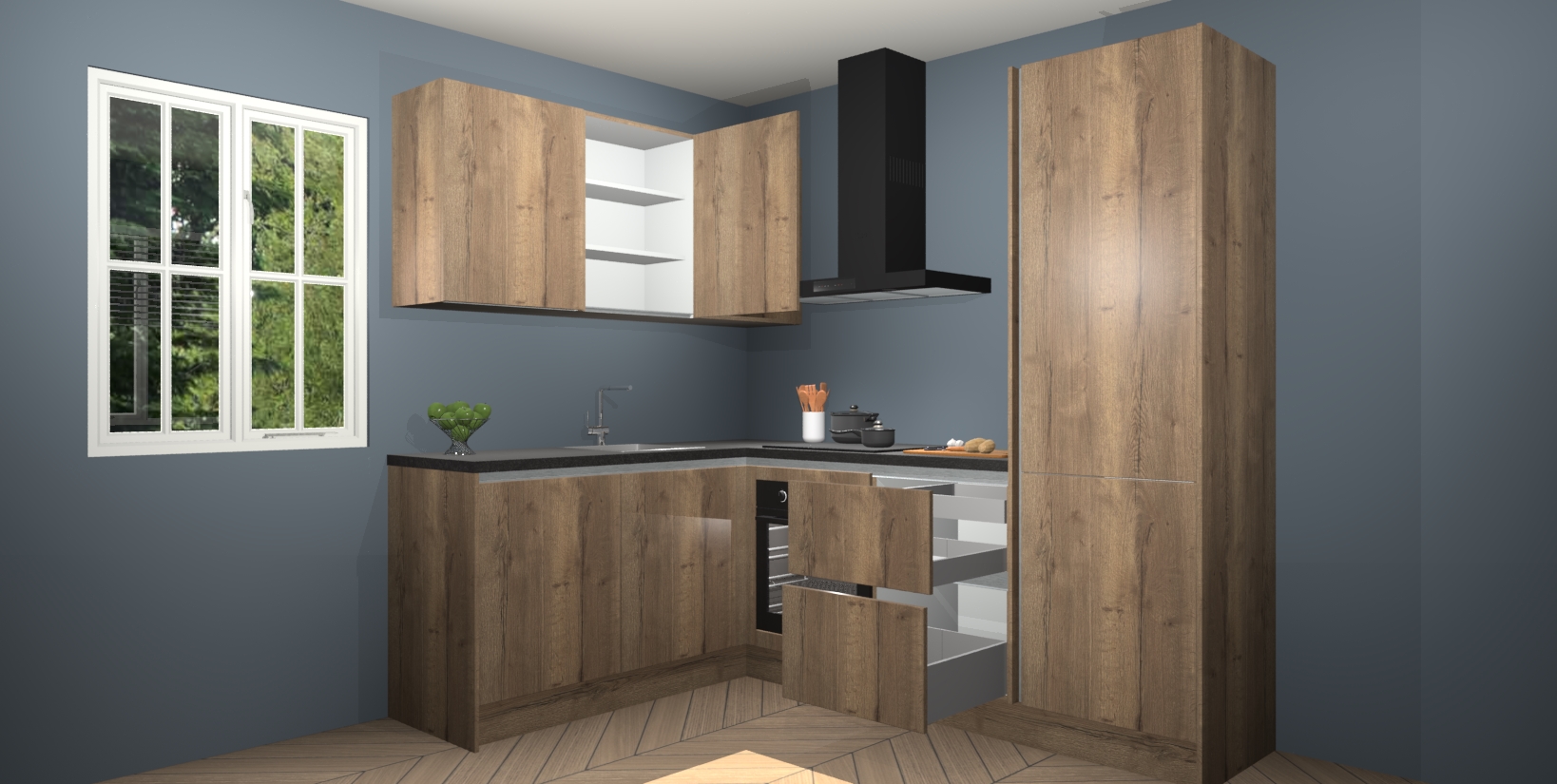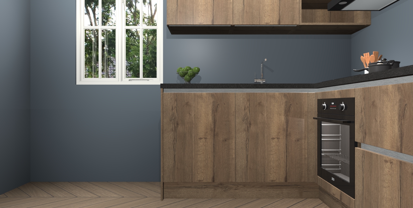 Maak kennis met de Chocolade Eiken greeploze keuken Boekarest, een moderne hoekkeuken waar al uw vrienden en familie jaloers op zullen zijn! Het verbluffende mooie ontwerp past in elk interieur en is een ideale keuze voor wie op zoek is naar een klassieke, maar verfijnde look.