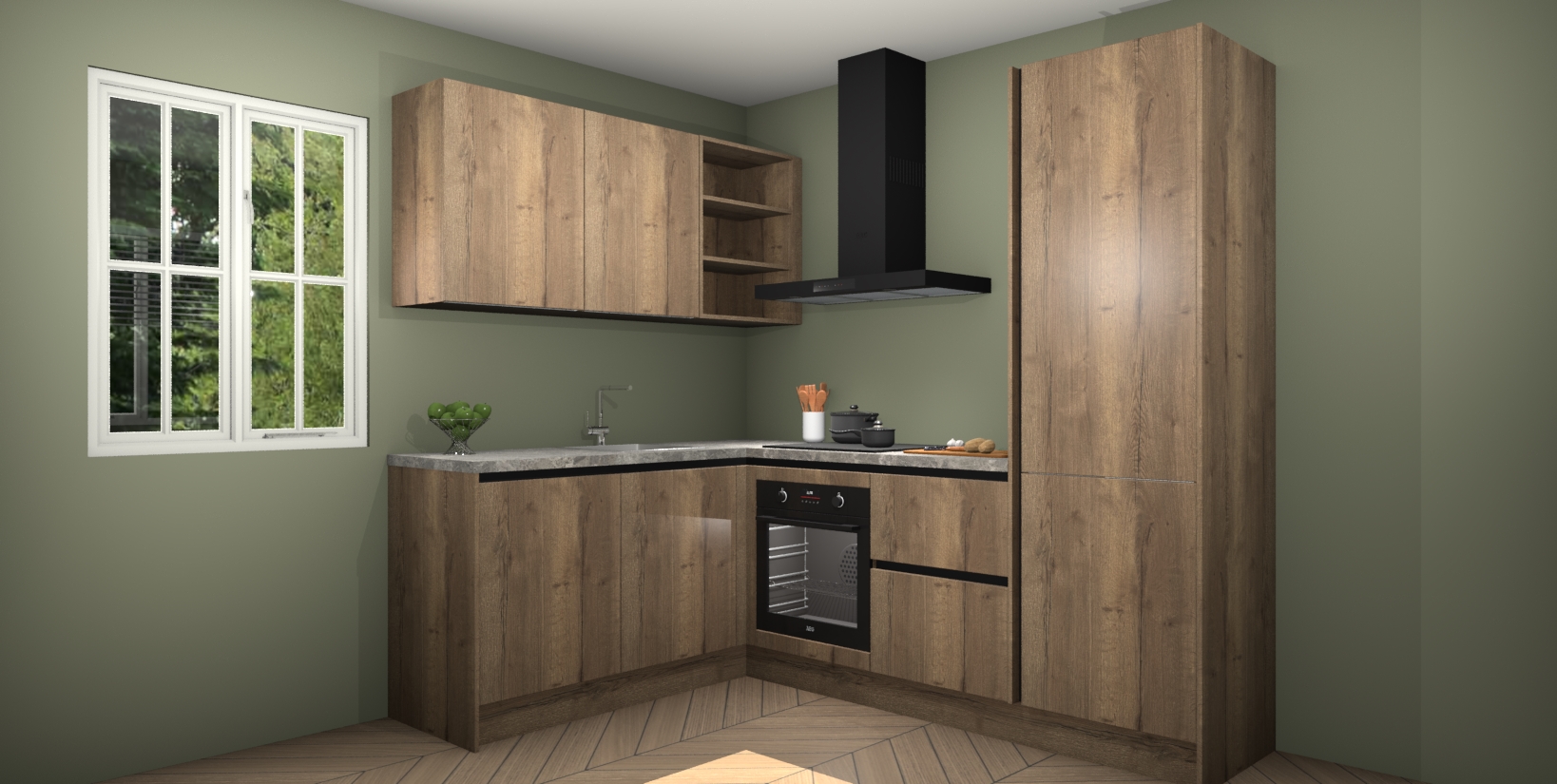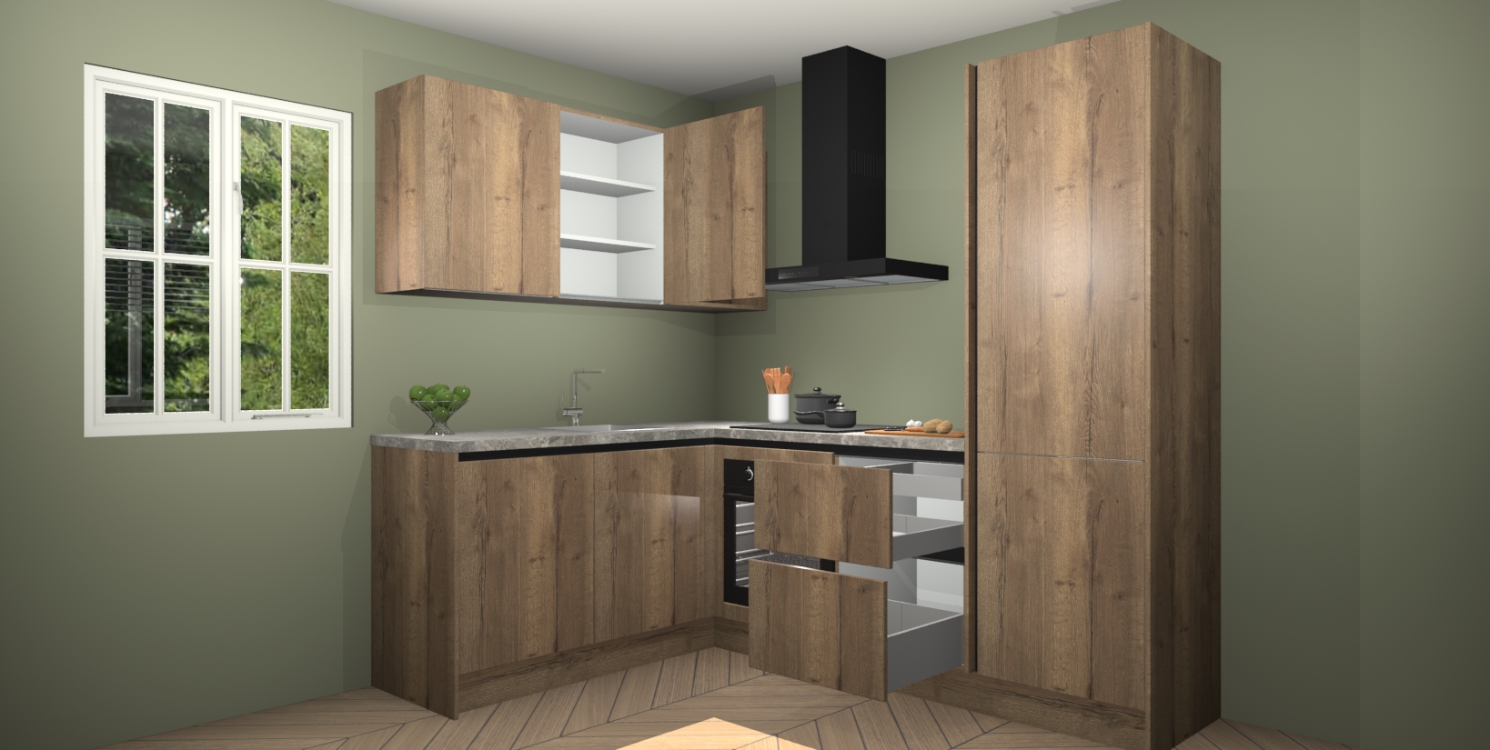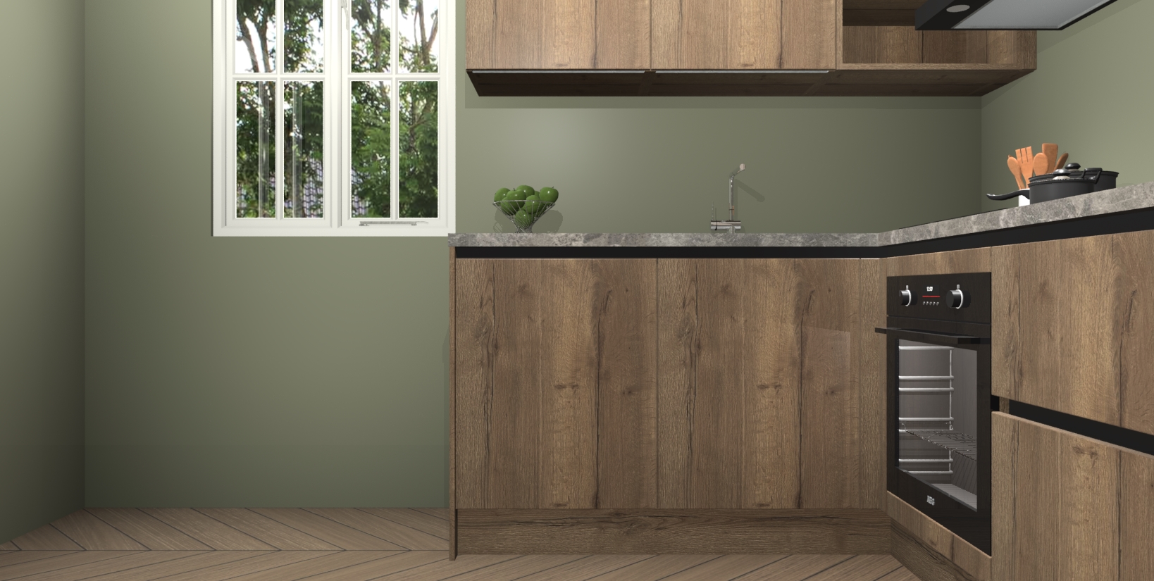Maak kennis met de Chocolade Eiken greeploze keuken Boekarest, een moderne hoekkeuken waar al uw vrienden en familie jaloers op zullen zijn! Het verbluffende mooie ontwerp past in elk interieur en is een ideale keuze voor wie op zoek is naar een klassieke, maar verfijnde look.