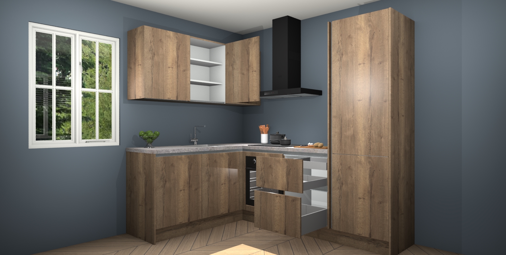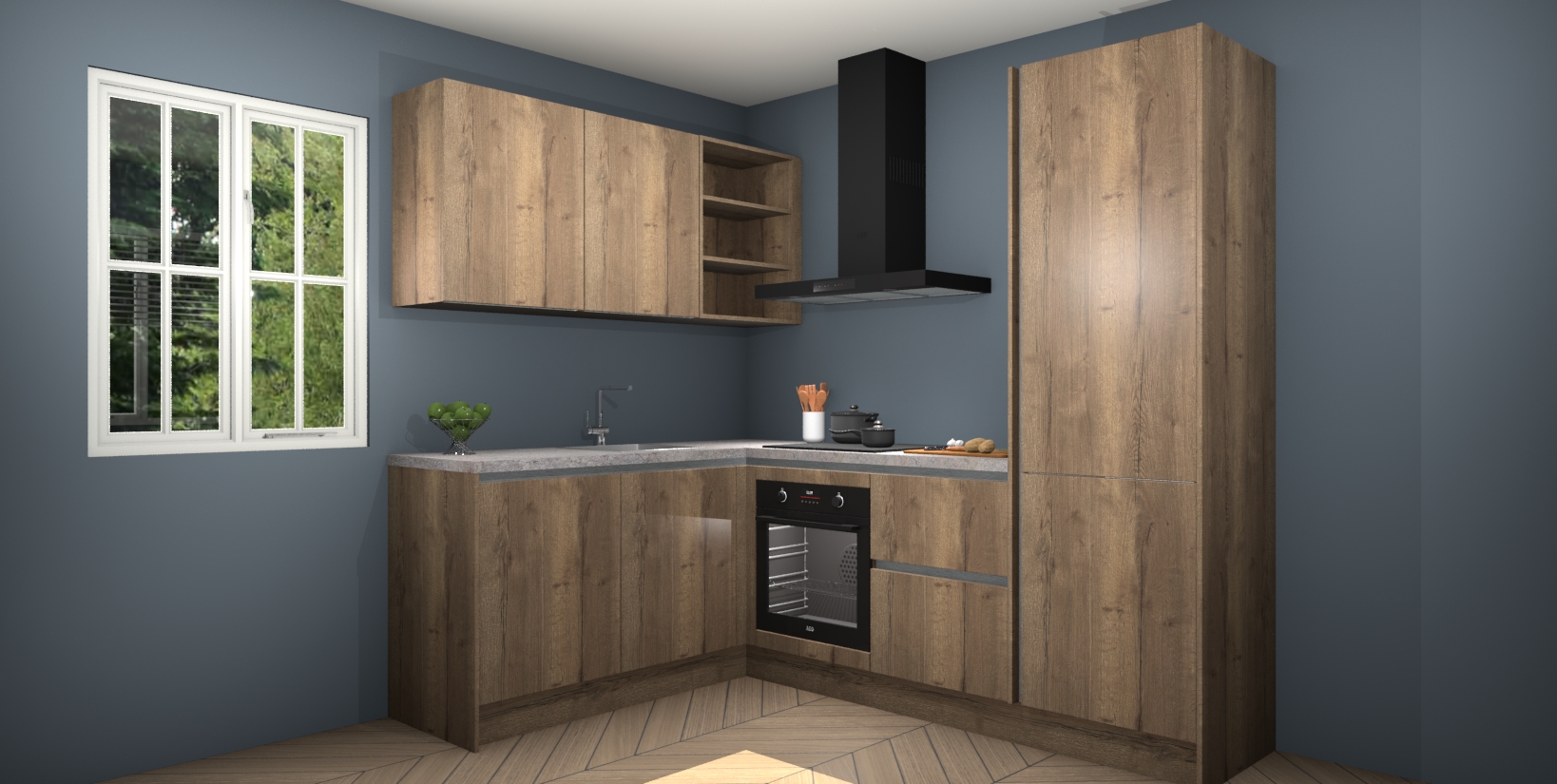 Maak kennis met de Chocolade Eiken greeploze keuken Boekarest, een moderne hoekkeuken waar al uw vrienden en familie jaloers op zullen zijn! Het verbluffende mooie ontwerp past in elk interieur en is een ideale keuze voor wie op zoek is naar een klassieke, maar verfijnde look.