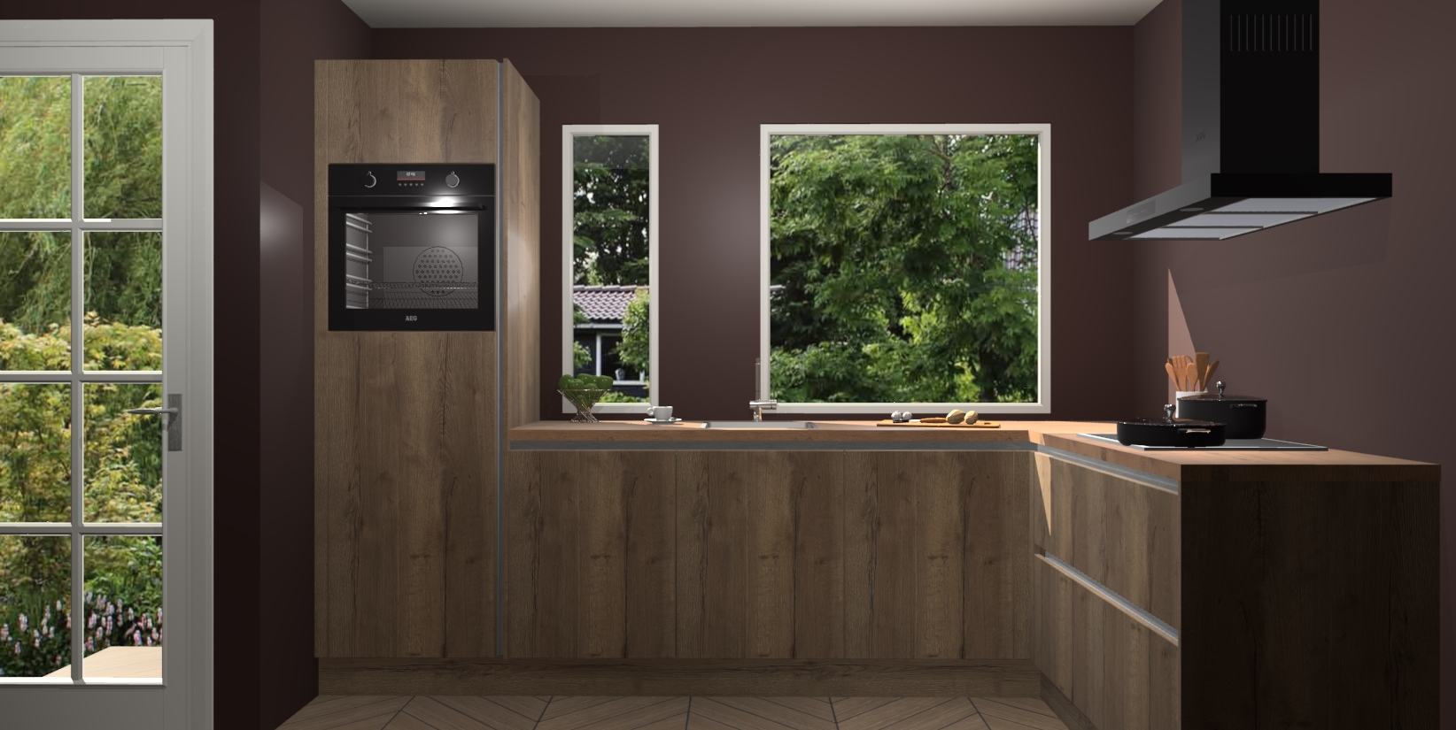 Deze complete keuken wordt geleverd met 5 inbouwapparaten: een oven, inductiekookplaat, afzuigkap, vaatwasser en koelkast. De toestellen kunnen na bestelling ook gemakkelijk worden opgewaardeerd naar AEG. Bovendien is elke deur in deze keuken voorzien van handige softclose technologie voor eenvoudig gebruik! Als een leuke toevoeging zit in deze keuken ook een carrousel, zo hoef je niet meer de hoek in duiken om iets te pakken.