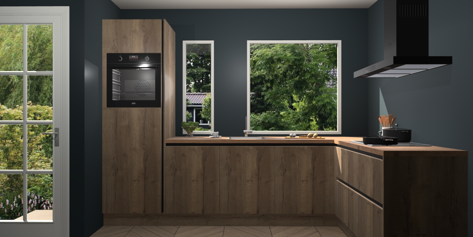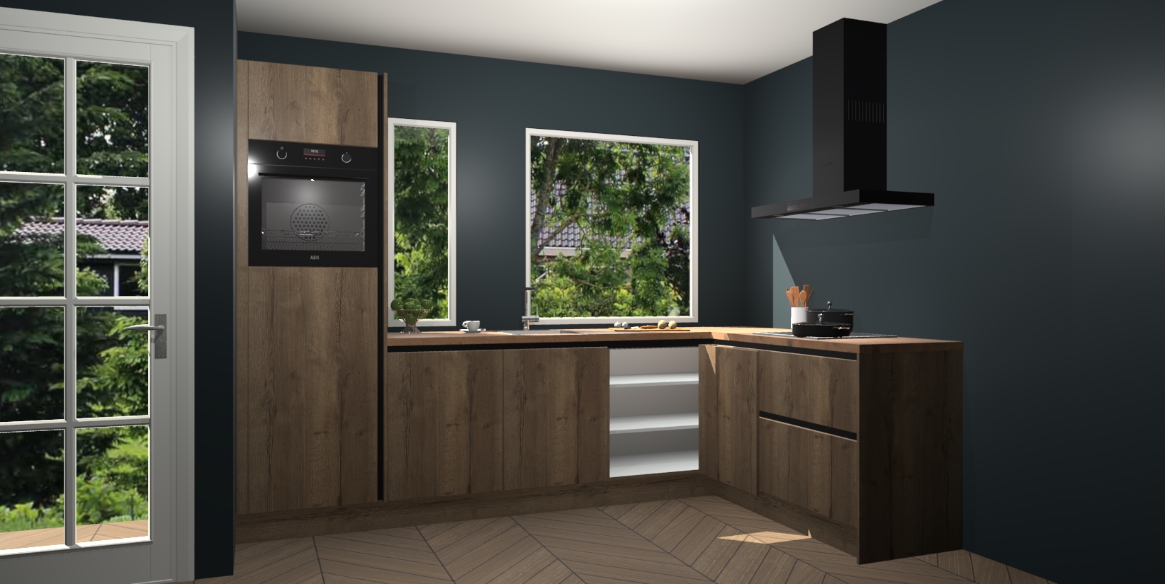 Deze complete keuken wordt geleverd met 5 inbouwapparaten: een oven, inductiekookplaat, afzuigkap, vaatwasser en koelkast. De toestellen kunnen na bestelling ook gemakkelijk worden opgewaardeerd naar AEG. Bovendien is elke deur in deze keuken voorzien van handige softclose technologie voor eenvoudig gebruik! Als een leuke toevoeging zit in deze keuken ook een carrousel, zo hoef je niet meer de hoek in duiken om iets te pakken.