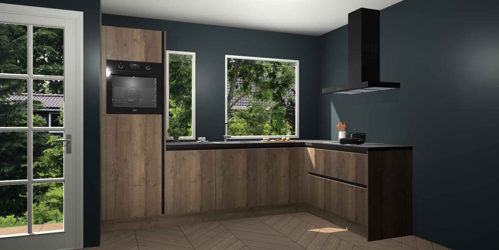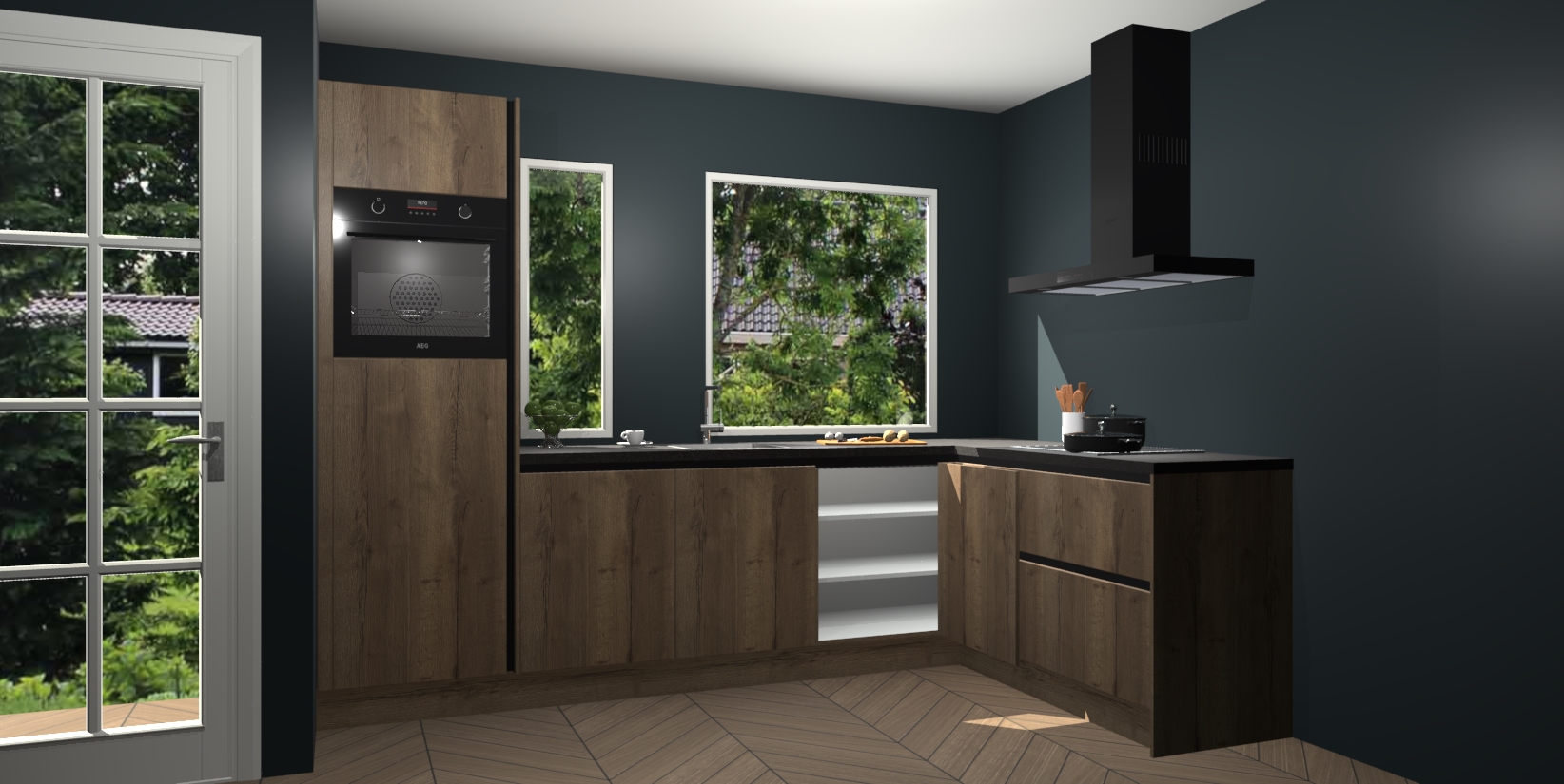 Deze complete keuken wordt geleverd met 5 inbouwapparaten: een oven, inductiekookplaat, afzuigkap, vaatwasser en koelkast. De toestellen kunnen na bestelling ook gemakkelijk worden opgewaardeerd naar AEG. Bovendien is elke deur in deze keuken voorzien van handige softclose technologie voor eenvoudig gebruik! Als een leuke toevoeging zit in deze keuken ook een carrousel, zo hoef je niet meer de hoek in duiken om iets te pakken.