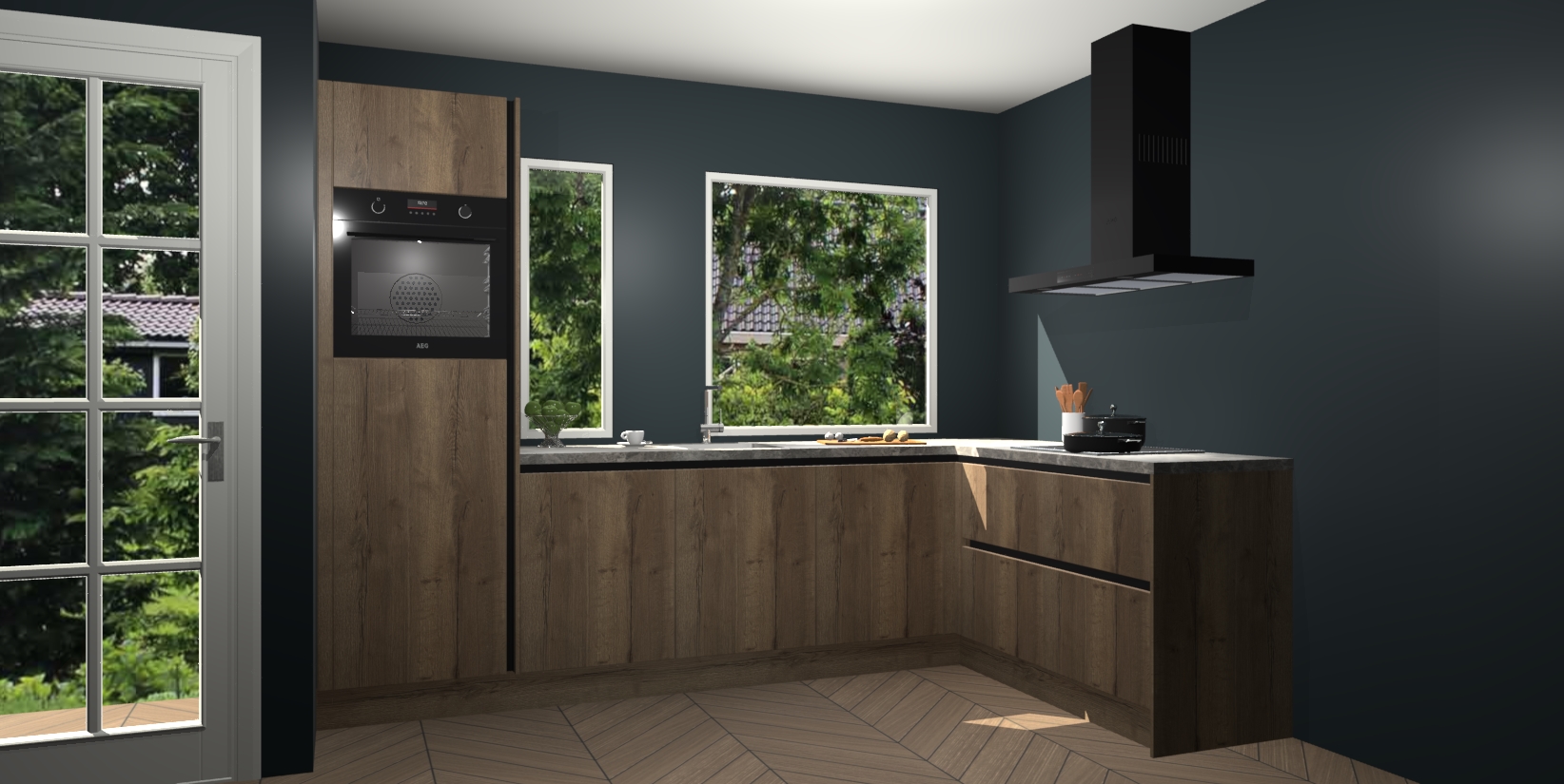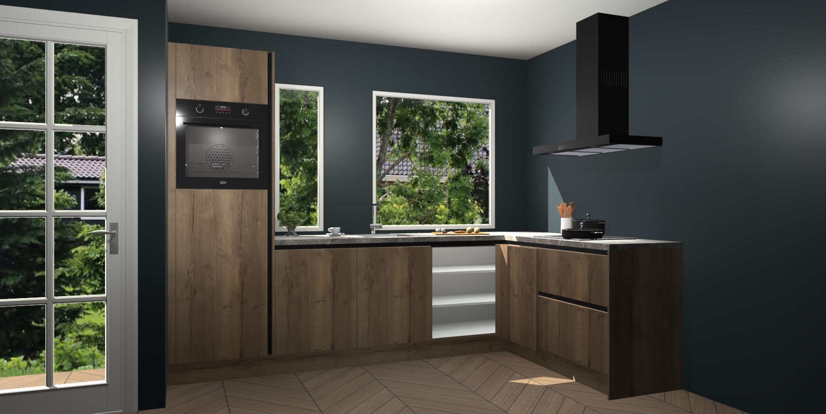 Deze complete keuken wordt geleverd met 5 inbouwapparaten: een oven, inductiekookplaat, afzuigkap, vaatwasser en koelkast. De toestellen kunnen na bestelling ook gemakkelijk worden opgewaardeerd naar AEG. Bovendien is elke deur in deze keuken voorzien van handige softclose technologie voor eenvoudig gebruik! Als een leuke toevoeging zit in deze keuken ook een carrousel, zo hoef je niet meer de hoek in duiken om iets te pakken.
