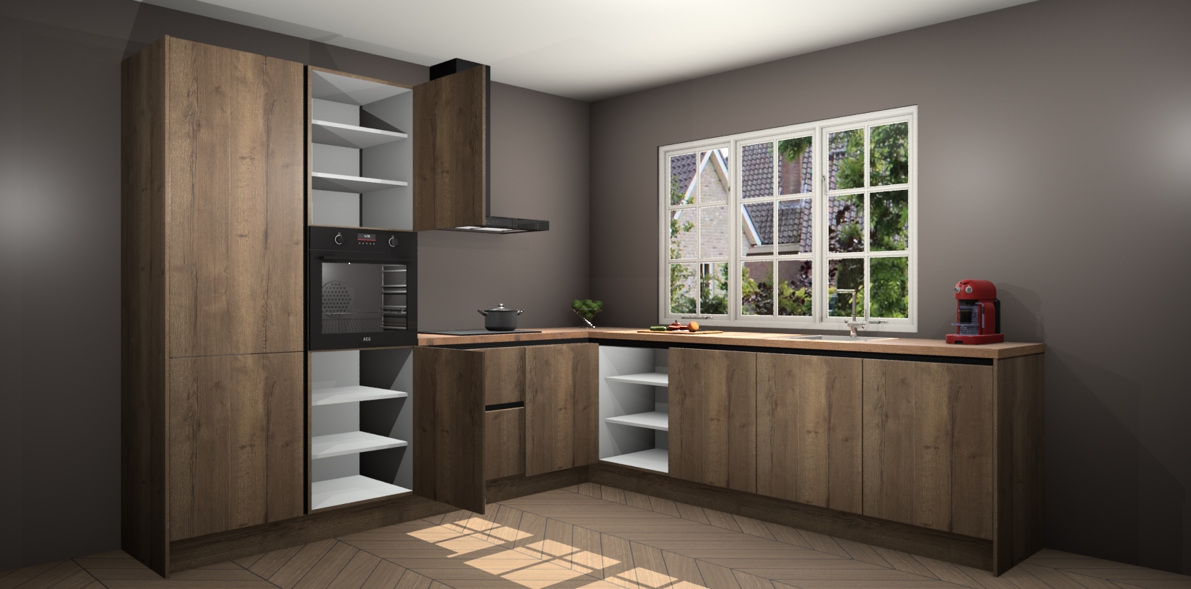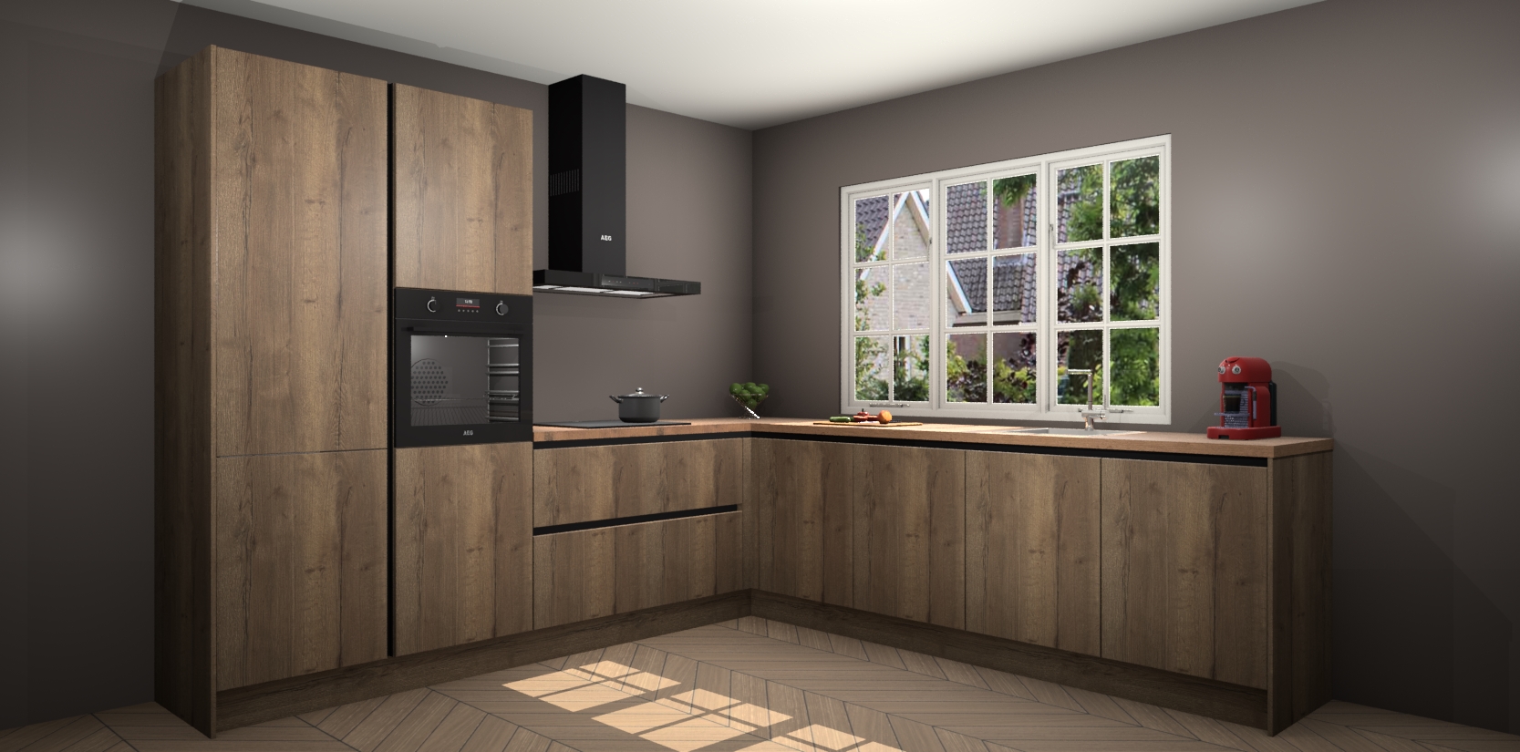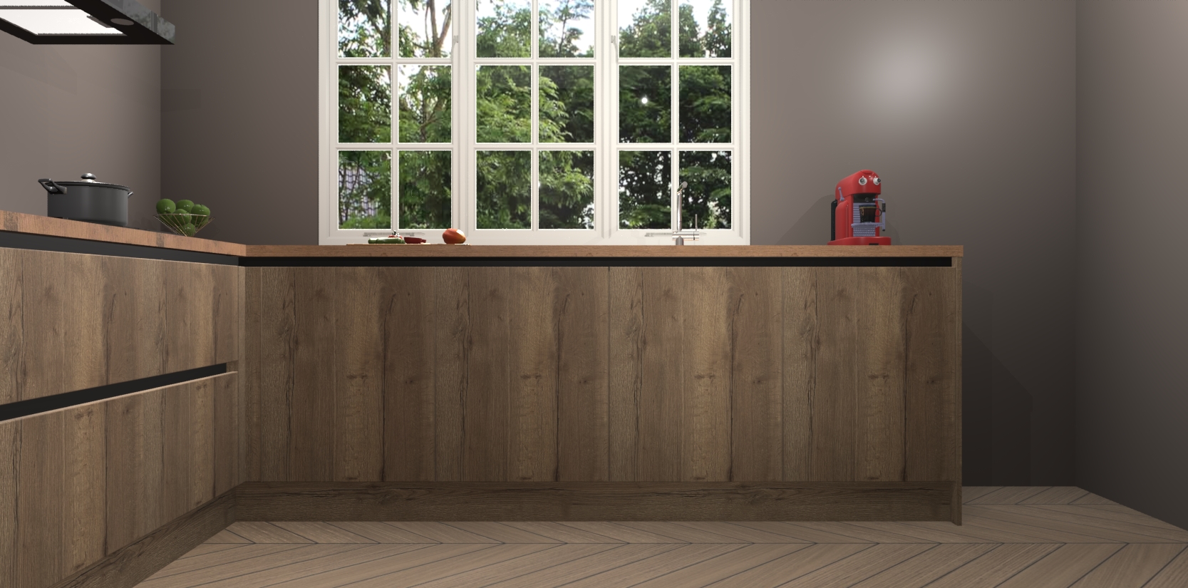 Welkom in de nieuwe wereld van een moderne keuken: de Chocolade Eiken greeploze keuken Casablanca! Met dit innovatieve keukendesign haalt u de natuur naar binnen. Neem plaats aan uw hout-look keuken en voel u verbonden met de prachtige Chocolade Eiken kleur. Zeer gebruiksvriendelijk, ervaring door prettige materialen en kleur die perfect aansluiten bij uw sfeerkeuze in huis.