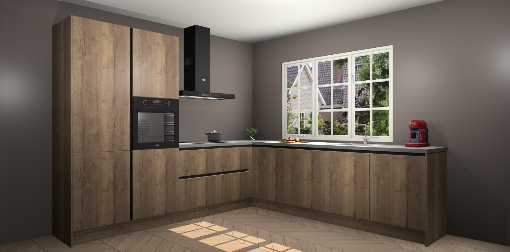 Welkom in de nieuwe wereld van een moderne keuken: de Chocolade Eiken greeploze keuken Casablanca! Met dit innovatieve keukendesign haalt u de natuur naar binnen. Neem plaats aan uw hout-look keuken en voel u verbonden met de prachtige Chocolade Eiken kleur. Zeer gebruiksvriendelijk, ervaring door prettige materialen en kleur die perfect aansluiten bij uw sfeerkeuze in huis.