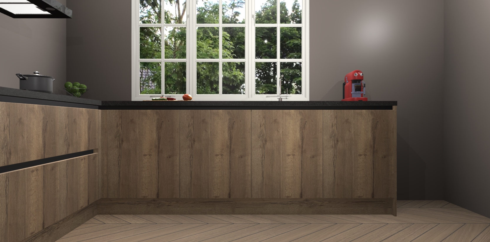 Welkom in de nieuwe wereld van een moderne keuken: de Chocolade Eiken greeploze keuken Casablanca! Met dit innovatieve keukendesign haalt u de natuur naar binnen. Neem plaats aan uw hout-look keuken en voel u verbonden met de prachtige Chocolade Eiken kleur. Zeer gebruiksvriendelijk, ervaring door prettige materialen en kleur die perfect aansluiten bij uw sfeerkeuze in huis.