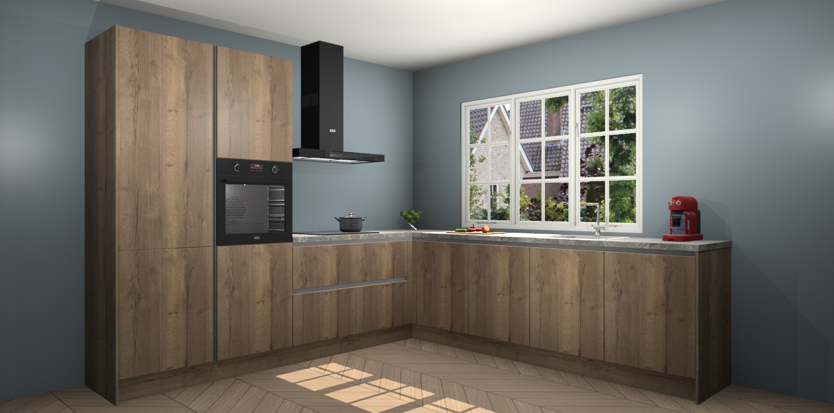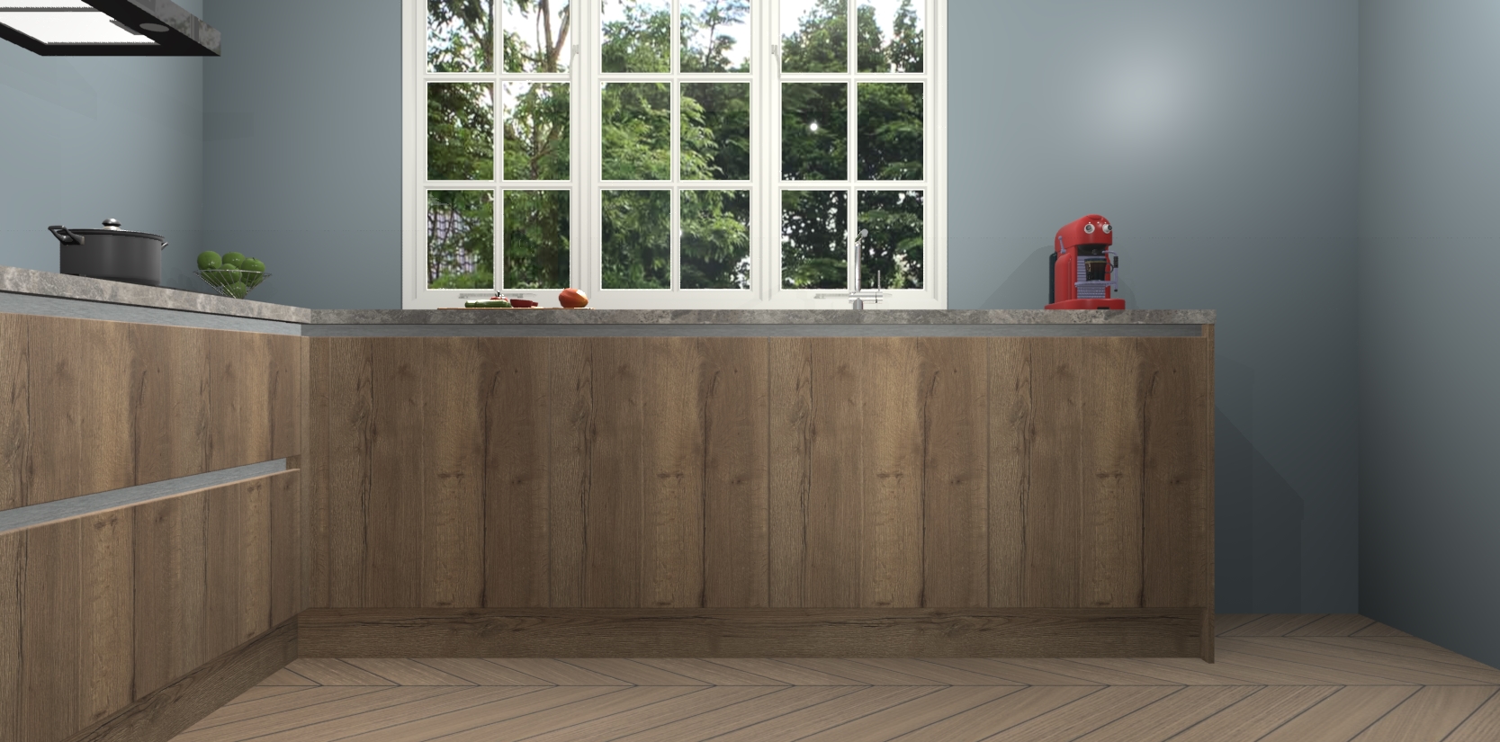 Welkom in de nieuwe wereld van een moderne keuken: de Chocolade Eiken greeploze keuken Casablanca! Met dit innovatieve keukendesign haalt u de natuur naar binnen. Neem plaats aan uw hout-look keuken en voel u verbonden met de prachtige Chocolade Eiken kleur. Zeer gebruiksvriendelijk, ervaring door prettige materialen en kleur die perfect aansluiten bij uw sfeerkeuze in huis.