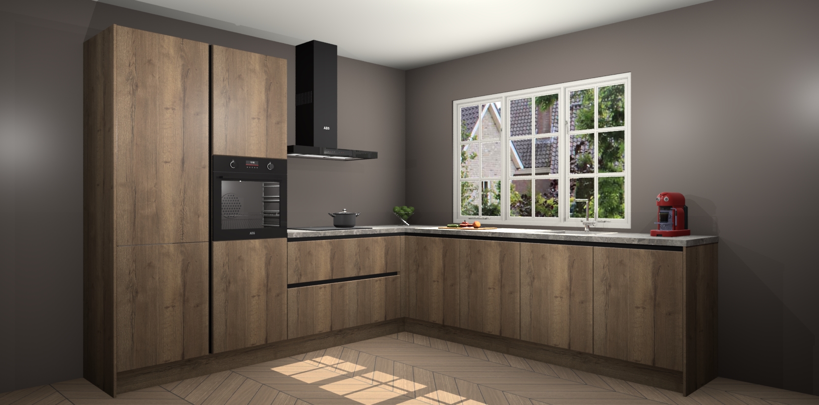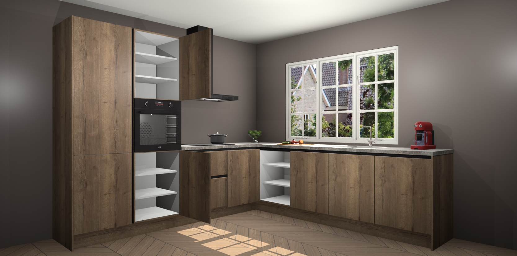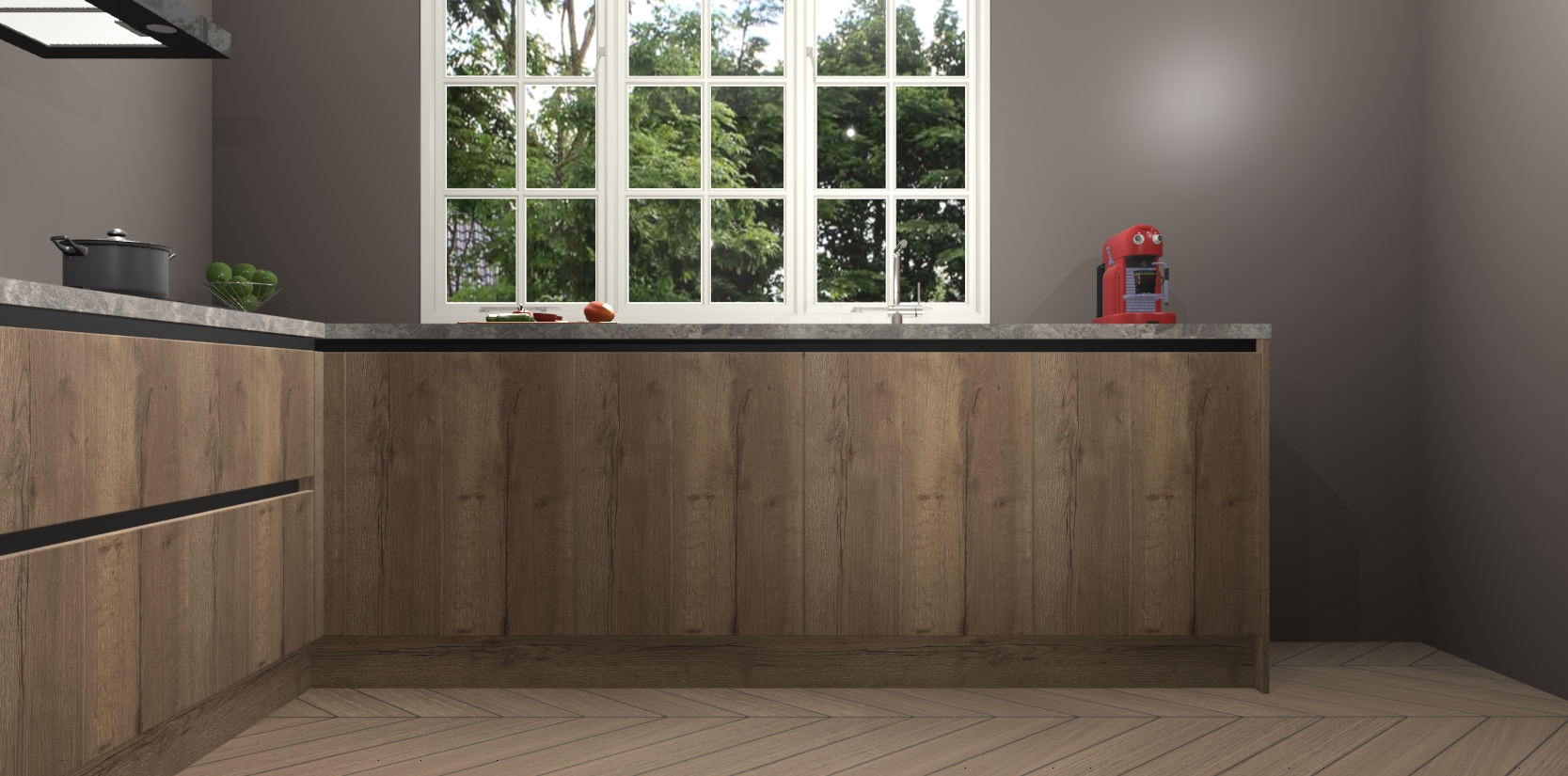 Welkom in de nieuwe wereld van een moderne keuken: de Chocolade Eiken greeploze keuken Casablanca! Met dit innovatieve keukendesign haalt u de natuur naar binnen. Neem plaats aan uw hout-look keuken en voel u verbonden met de prachtige Chocolade Eiken kleur. Zeer gebruiksvriendelijk, ervaring door prettige materialen en kleur die perfect aansluiten bij uw sfeerkeuze in huis.