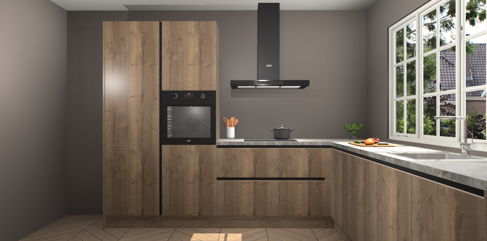 De keuken heeft veel opbergruimte, waardoor u alle ingrediënten gemakkelijk bereikbaar hebt staan. En daarnaast bevat deze volledig uitgeruste keuken ook 5 ingebouwde apparaten: een oven, inductiekookplaat, afzuigkap, vaatwasser en koelkast. Deze zijn heel eenvoudig na bestellen te upgraden naar AEG als u dit wilt. Bovendien zijn de softclose-kastdeuren ideaal; geef ze gewoon even een tikje en ze sluiten automatisch met geruisloze precisie.